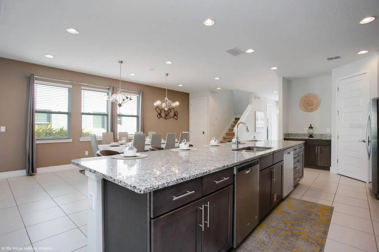 BEAUTIFUL and recently renovated, FULLY FURNISHED Vacation property, with 9 bedrooms, 8.5 bathrooms SLEEPS 16+! Amazing investment opportunity, healthy CAP Rates, and calendar very high occupancy rates at the time. The open-concept living area features a large dining area, plenty of seating, and great pool views The home is built on an oversized lot, with fences and hedges all around. The downstairs master retreat is spacious and offers access to the pool and its private bathroom. The garage has been turned into a game room. Upstairs you will find a loft with a pool table and TV. Seven more bedrooms provide plenty of room for guests. The Encore at Reunion Resort includes a spectacular clubhouse, an award-winning restaurant, a Water Park, a full-service spa, two playgrounds, a state-of-the-art gym, and basketball, volleyball & tennis courts. The HOA fee covers 24-hour gated entrances & roaming security, trash pickup, & an annual exterior house cleaning. A concierge desk is available at the clubhouse to assist with booking tickets, meals, airline check-ins, resort-provided shuttles to parks, & more. Enjoy being minutes away from three golf courses and in the heart of attractions, shopping, dining, and more.
