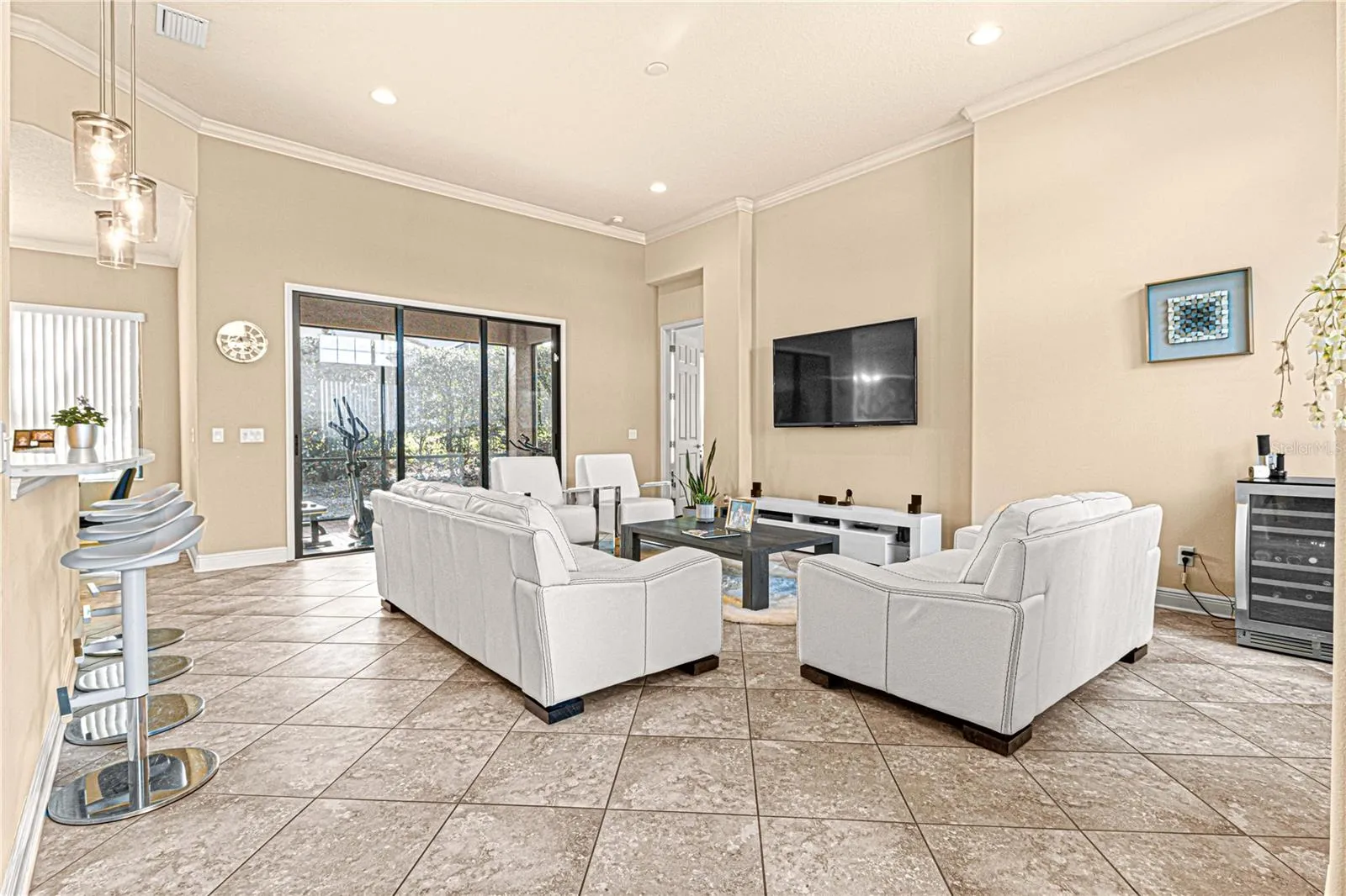 +"PublicRemarks": "Amazing 2018 villa located in the Lakeview Villas community inside the gated community of Terra Vista. This home still has the feeling of being brand new, with elevated accents such as crown molding, 8’ doors throughout, NO carpet, and stone countertops in both bathrooms and kitchen. The Open Living area offers a generously sized great room, an open kitchen, a breakfast bar, and a dining nook. The kitchen has a great flow with upgraded cream cabinetry – everything on a slow close! The stainless-steel appliance package has a built-in oven and microwave, gas cooktop, and sleek range hood. The split floor plan is a great set up for hosting family, with access to the second bathroom. The Master suite includes two walk-in closets, and a good-sized bathroom with double sinks, large, tiled shower, and toilet room. The screened lanai is shaded and private and offers a great spot to relax and enjoy the Florida weather. The garage floor has been finished, and the home includes a tankless gas water heater. This carefree home allows you plenty of free time to enjoy all the conveniently located amenities like, golf, tennis, fitness centers, spa, sauna, volleyball, pickle ball, dog park, bocce ball and much more. On top of it all, yard maintenance, irrigation, and basic cable are included in the POA!"