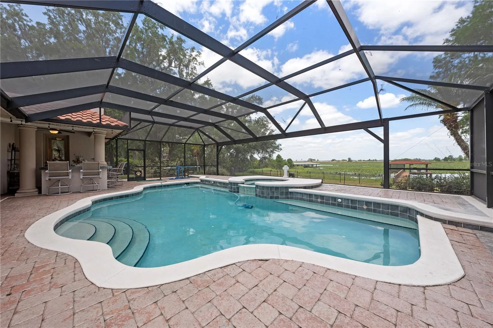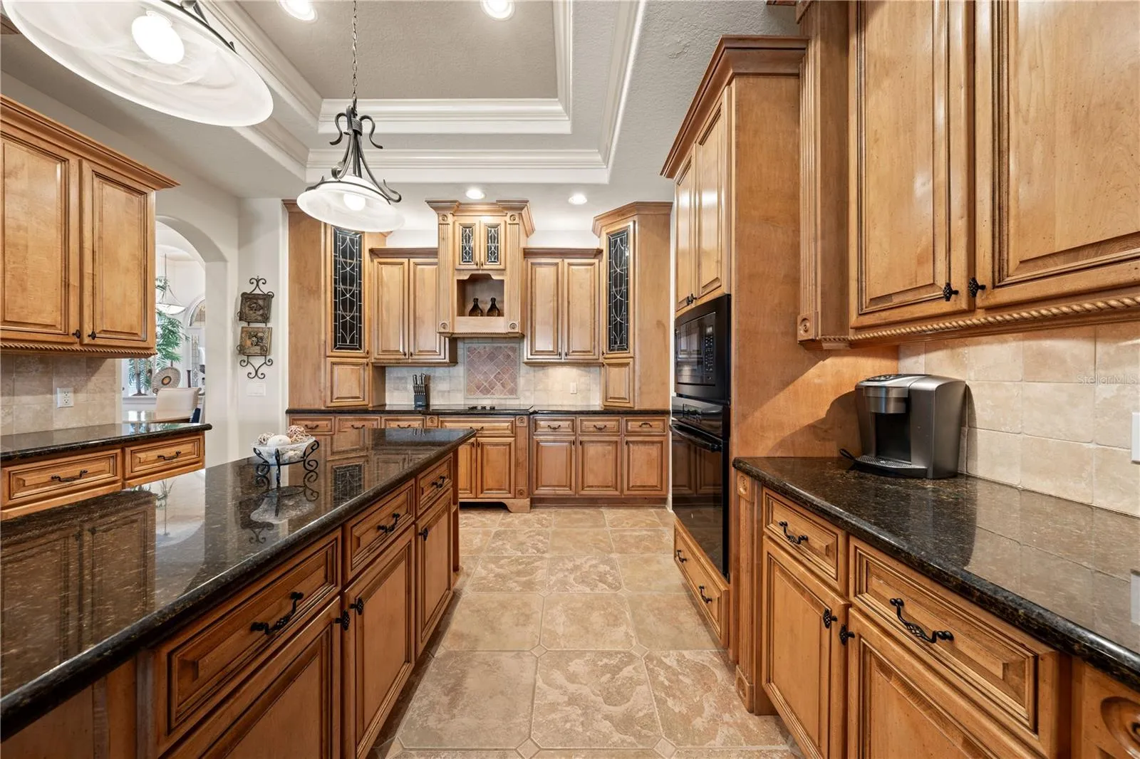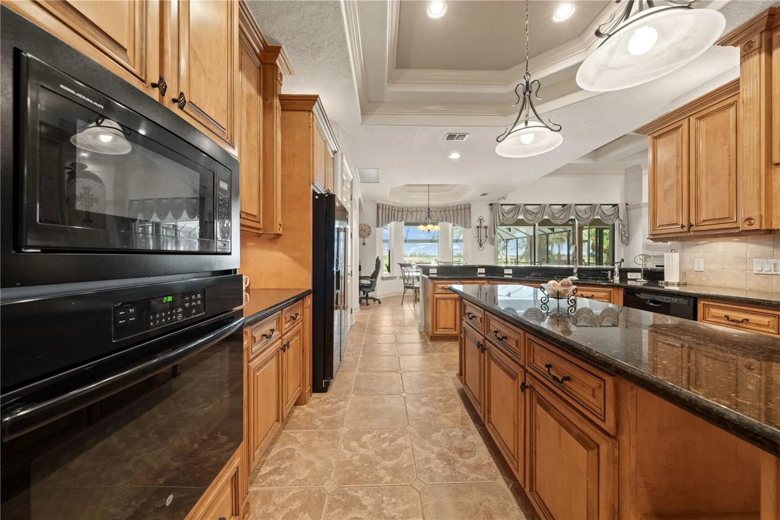 The gourmet kitchen is a centerpiece of function and beauty, featuring solid oak cabinetry, granite countertops, a JennAir oven, and stainless-steel appliances. Enjoy morning coffee in the breakfast nook as sunlight dances across the lake, or dine al fresco under the covered lanai overlooking the panoramic screened pool and spa.\r\n