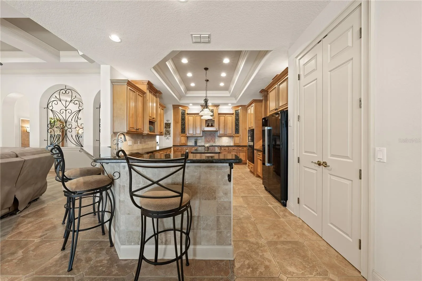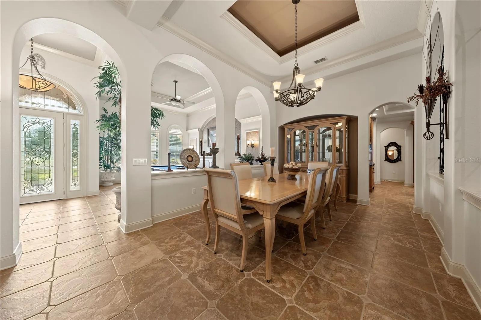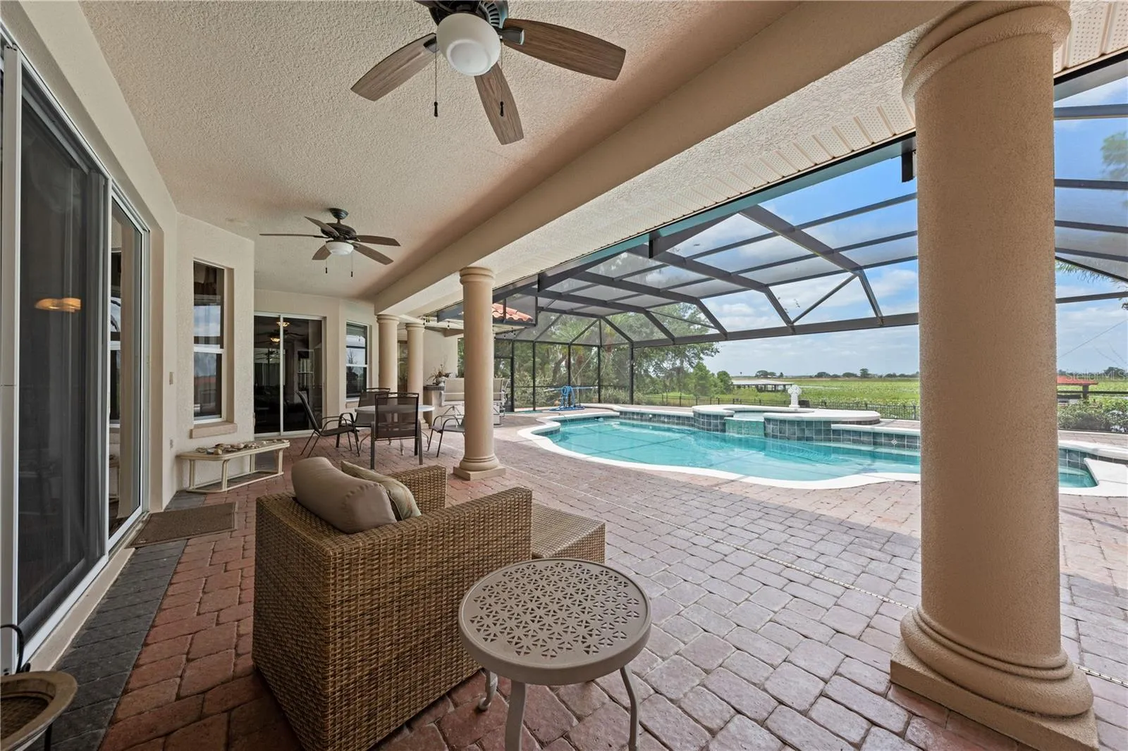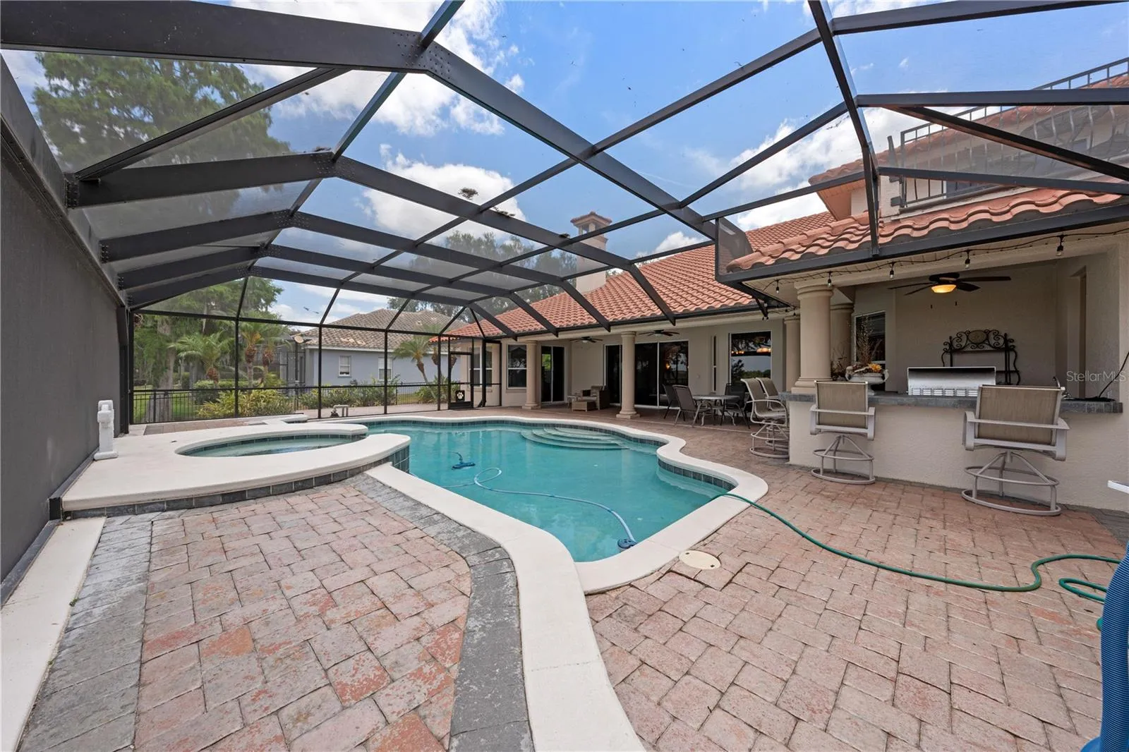 The gourmet kitchen is a centerpiece of function and beauty, featuring solid oak cabinetry, granite countertops, a JennAir oven, and stainless-steel appliances. Enjoy morning coffee in the breakfast nook as sunlight dances across the lake, or dine al fresco under the covered lanai overlooking the panoramic screened pool and spa.\r\n