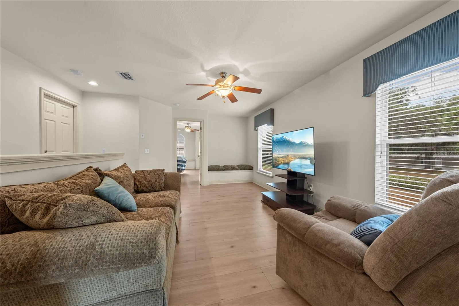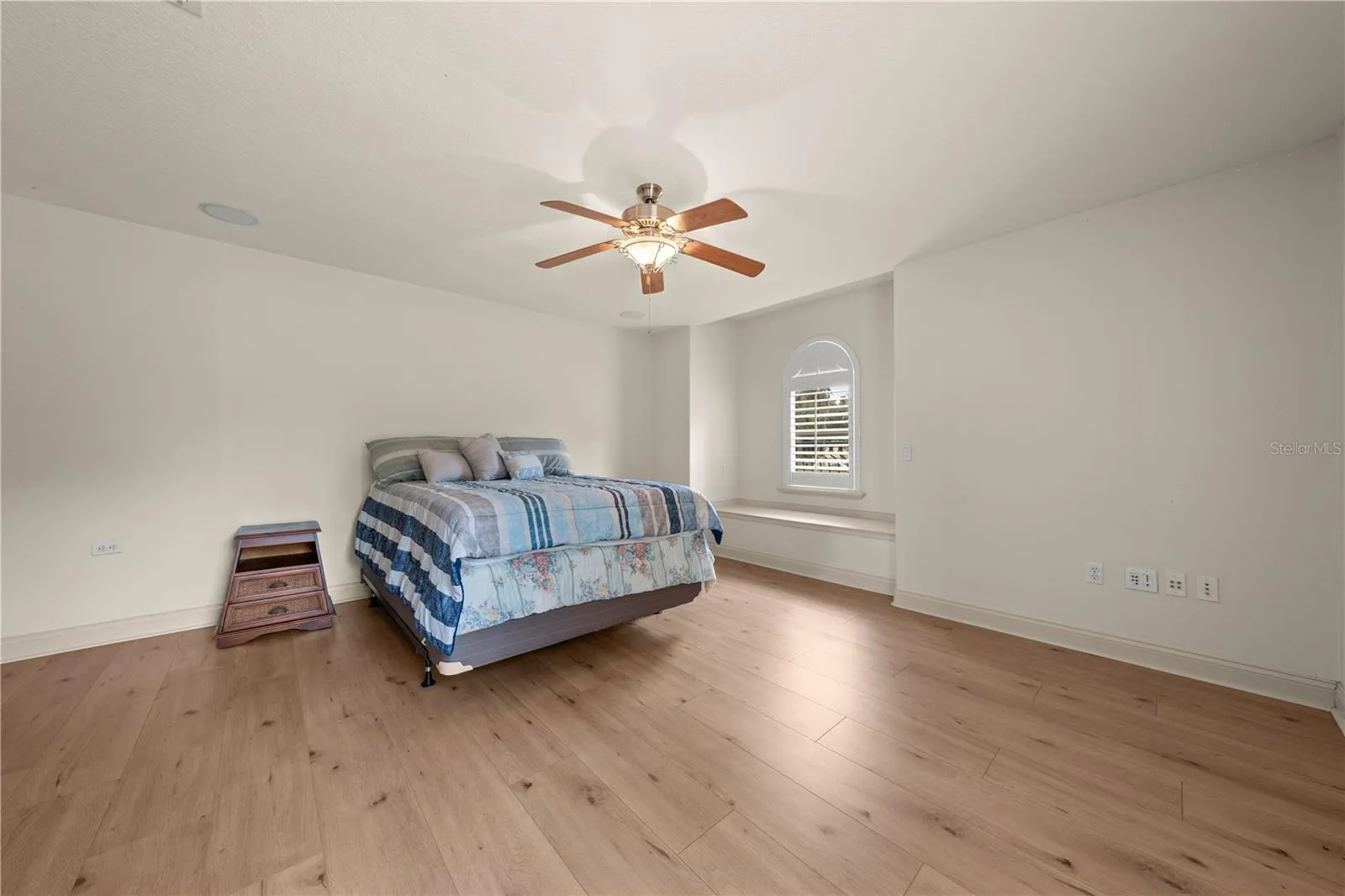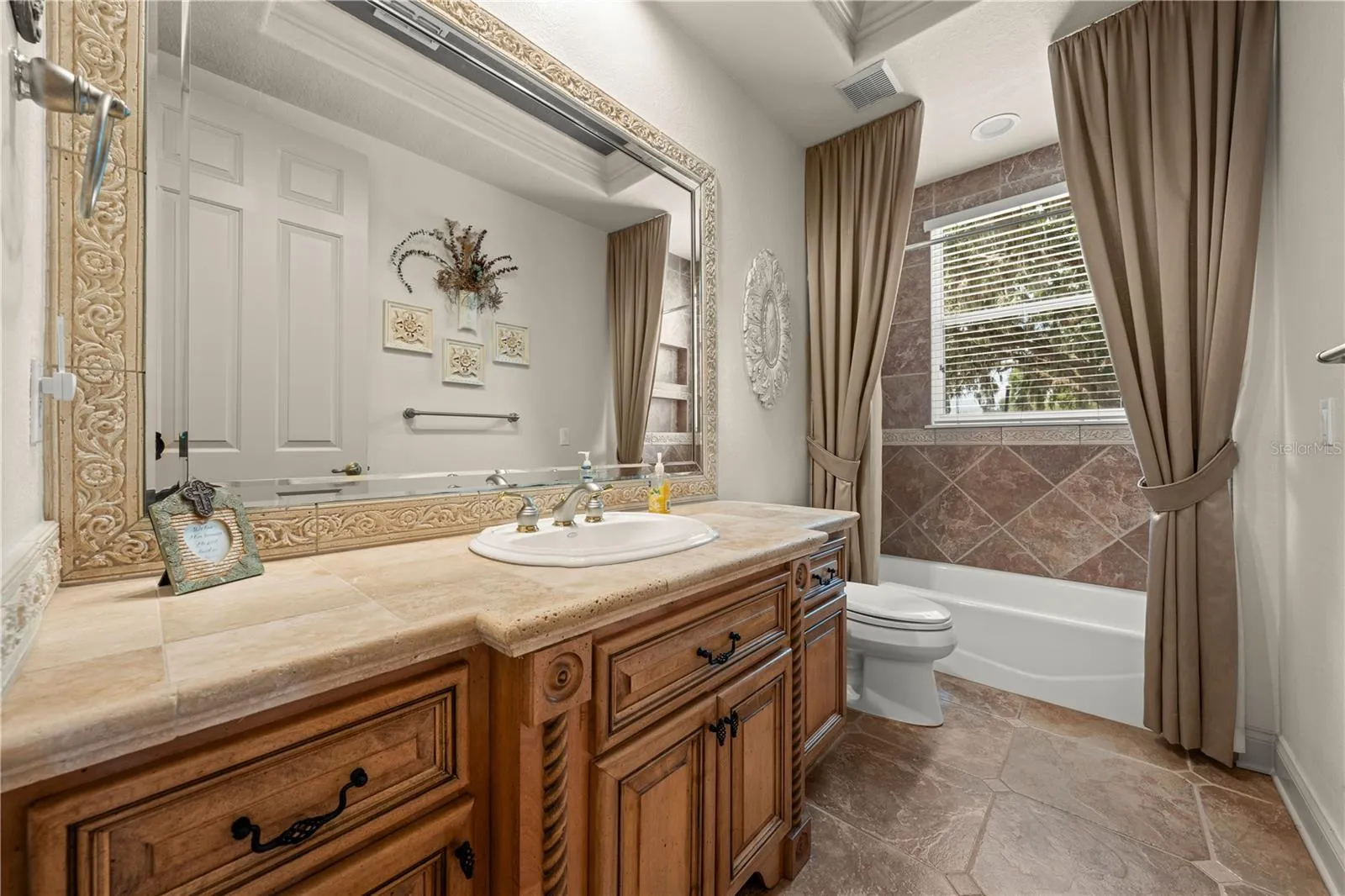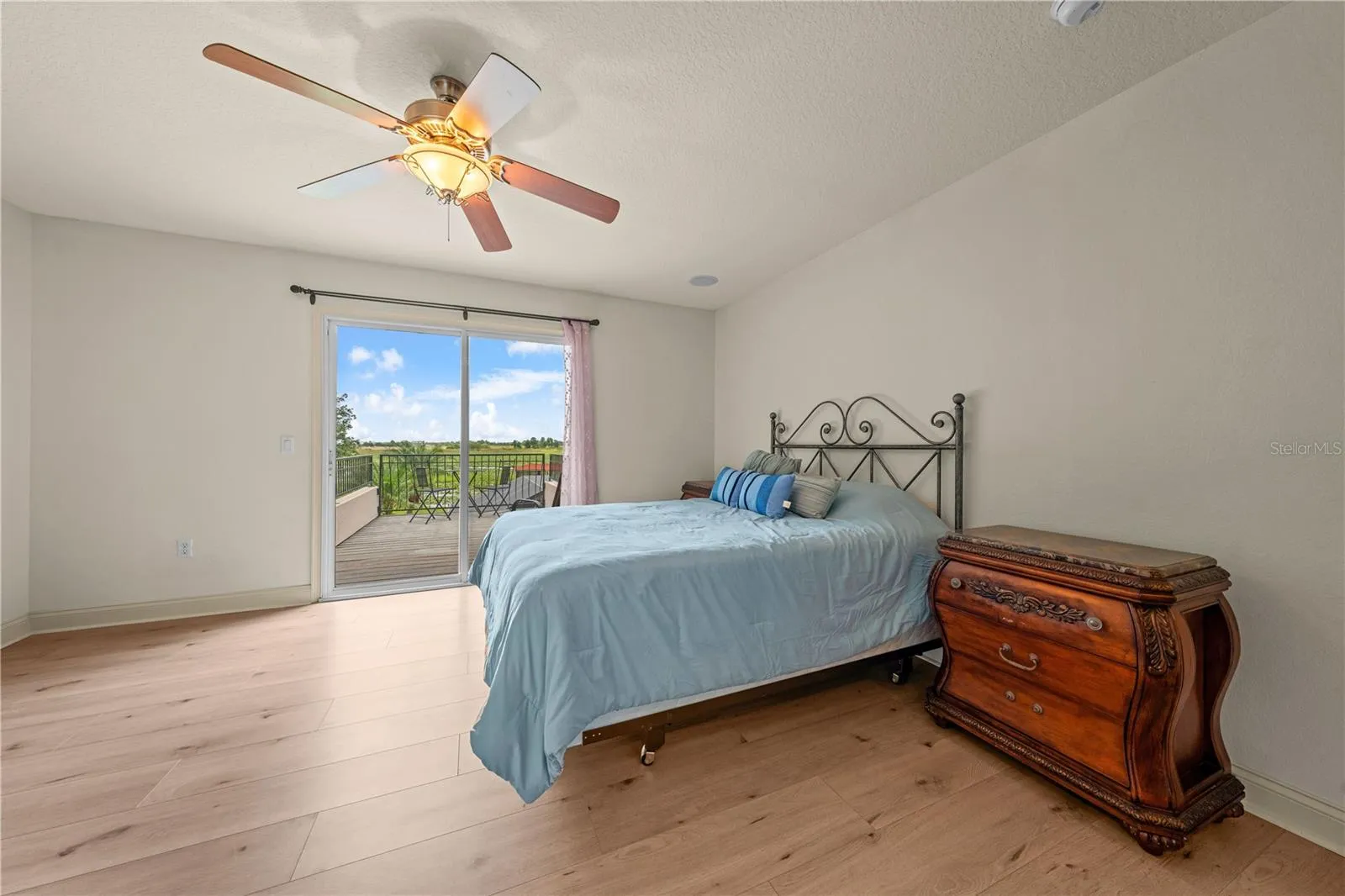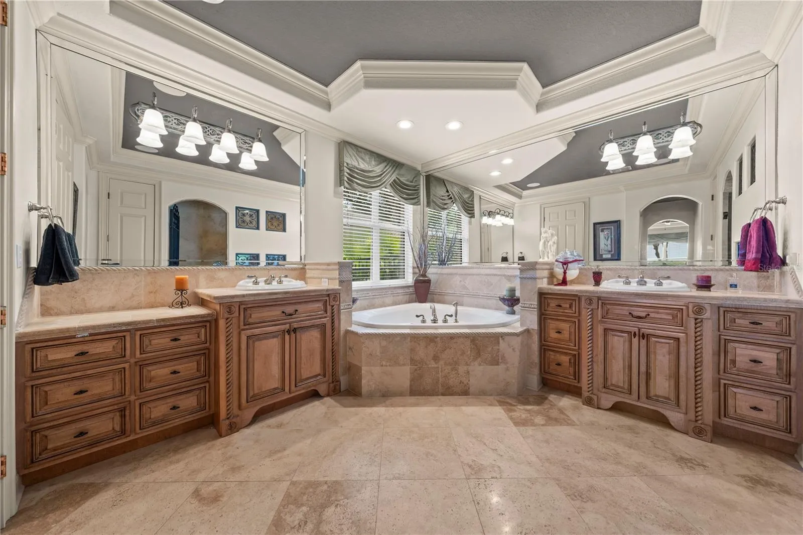The expansive primary suite offers a private retreat with dual walk-in closets, dual vanities, a jetted soaking tub, and tranquil water views. Upstairs, two spacious bedrooms share a large bath, game room, and private terrace—perfect for guests or family gatherings. A downstairs guest suite provides convenient access to the pool and lanai, ensuring privacy and comfort for visitors.\r\n