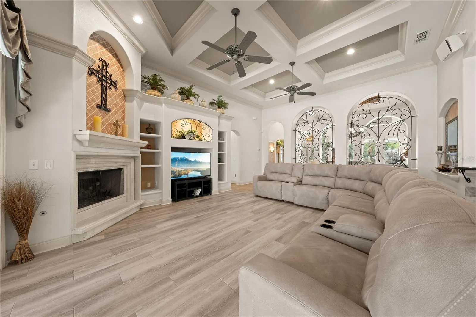 Beyond its stately façade and clay tile roof lies over 4,100 square feet of open, sunlit living space, designed to capture serene water views from nearly every room. The grand foyer welcomes you with soaring ceilings, stone-look flooring, and custom millwork that echo the classic elegance of Coral Gables design. A private study, formal dining room, and spacious living area with gas fireplace and built-in cabinetry set the stage for sophisticated entertaining.\r\n