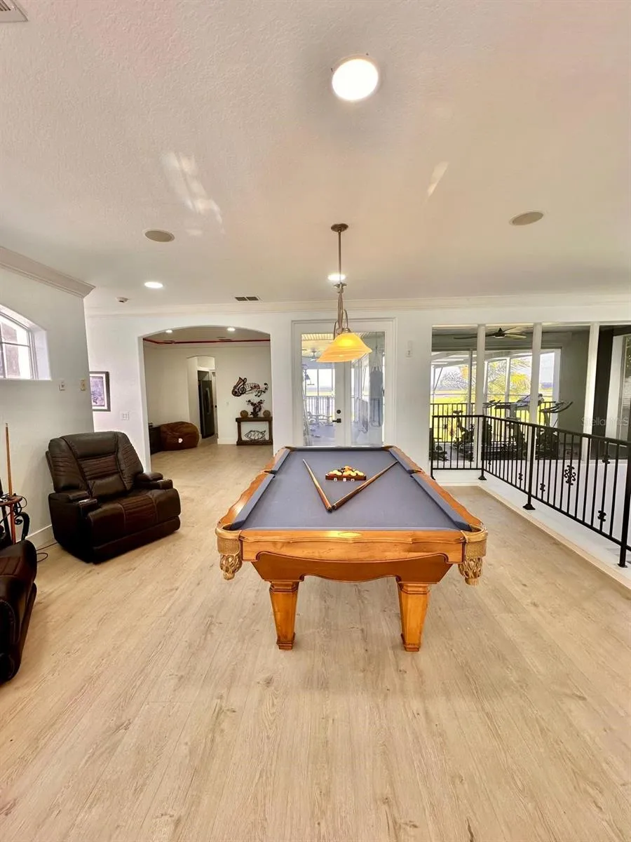 The open-concept design seamlessly connects the modern kitchen, living room, and dining area, all offering stunning views of the private pool and Lake Toho.\r\n