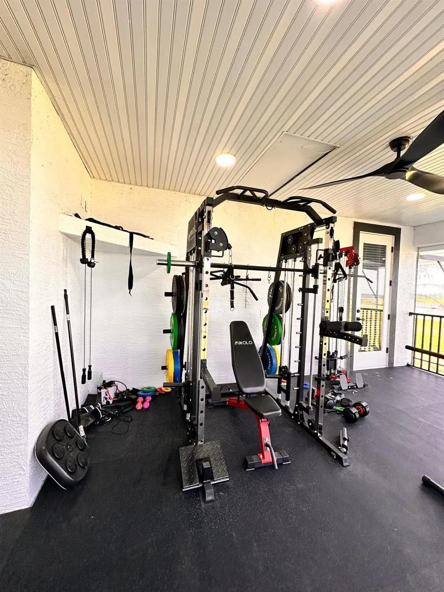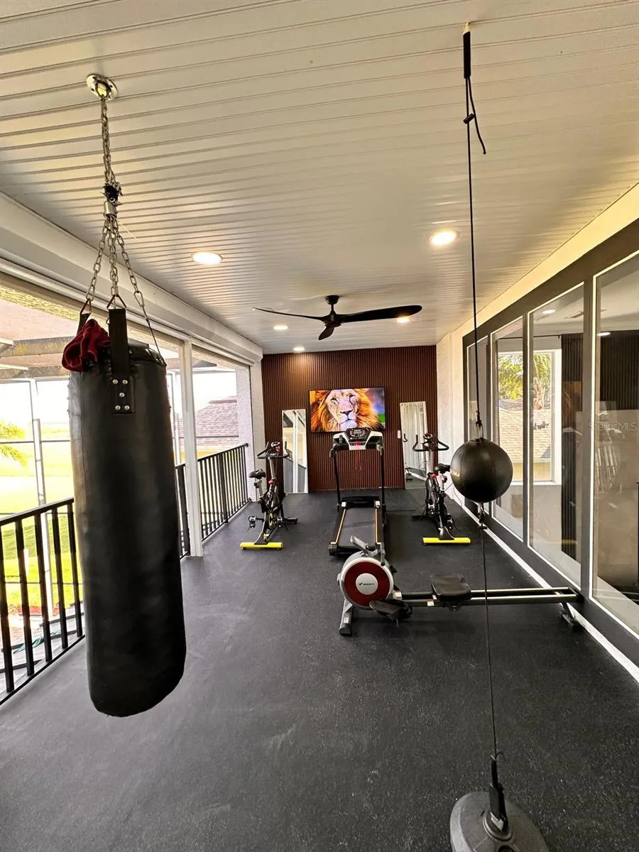 The living area also features an electric fireplace for cozy evenings, while the fully equipped private gym with views of the lake transforms workouts into an inspiring experience.\r\n