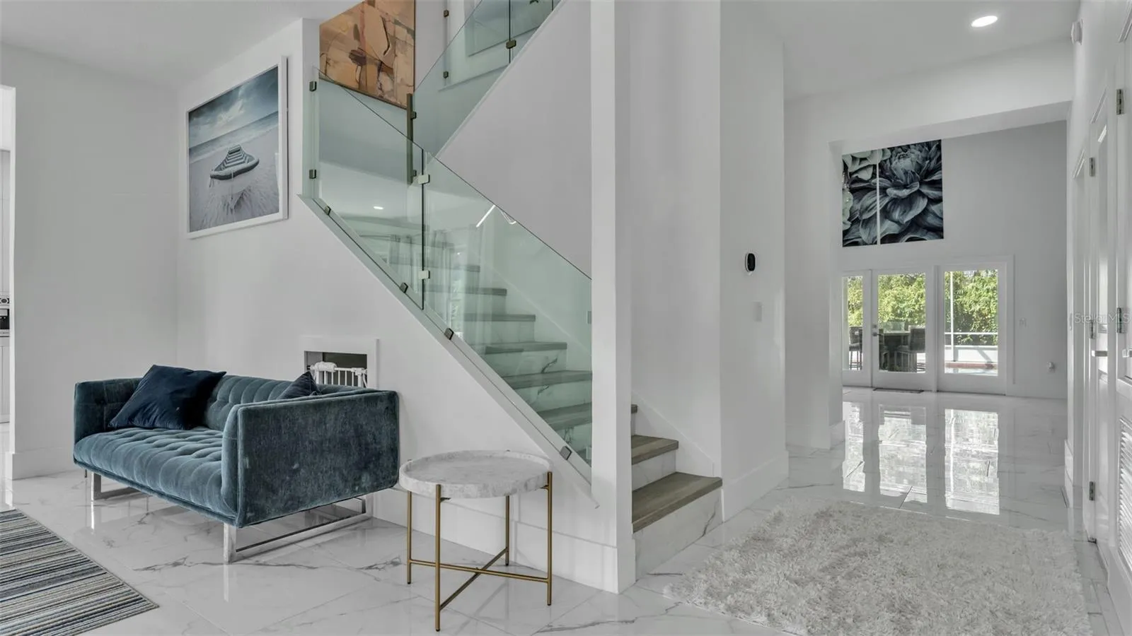 From the moment you arrive, the long driveway and welcoming front porch set the tone for comfort and sophistication. Step inside the brand-new modern renovation featuring an open concept design and tasteful finishes throughout. The spacious family room is highlighted by an elegant tile accent wall with an electric fireplace and French doors overlooking the pool and mature tree views.\r\n