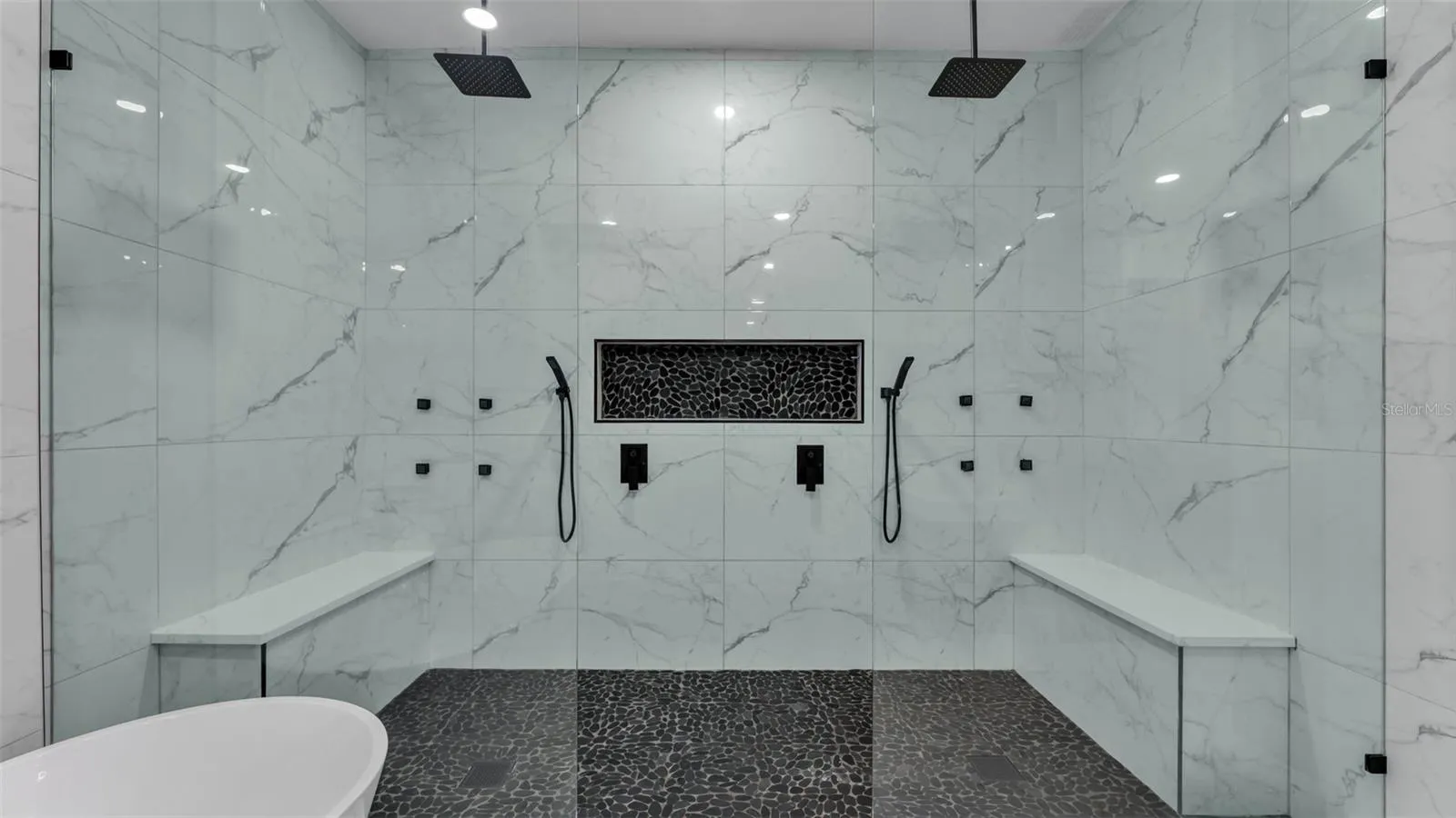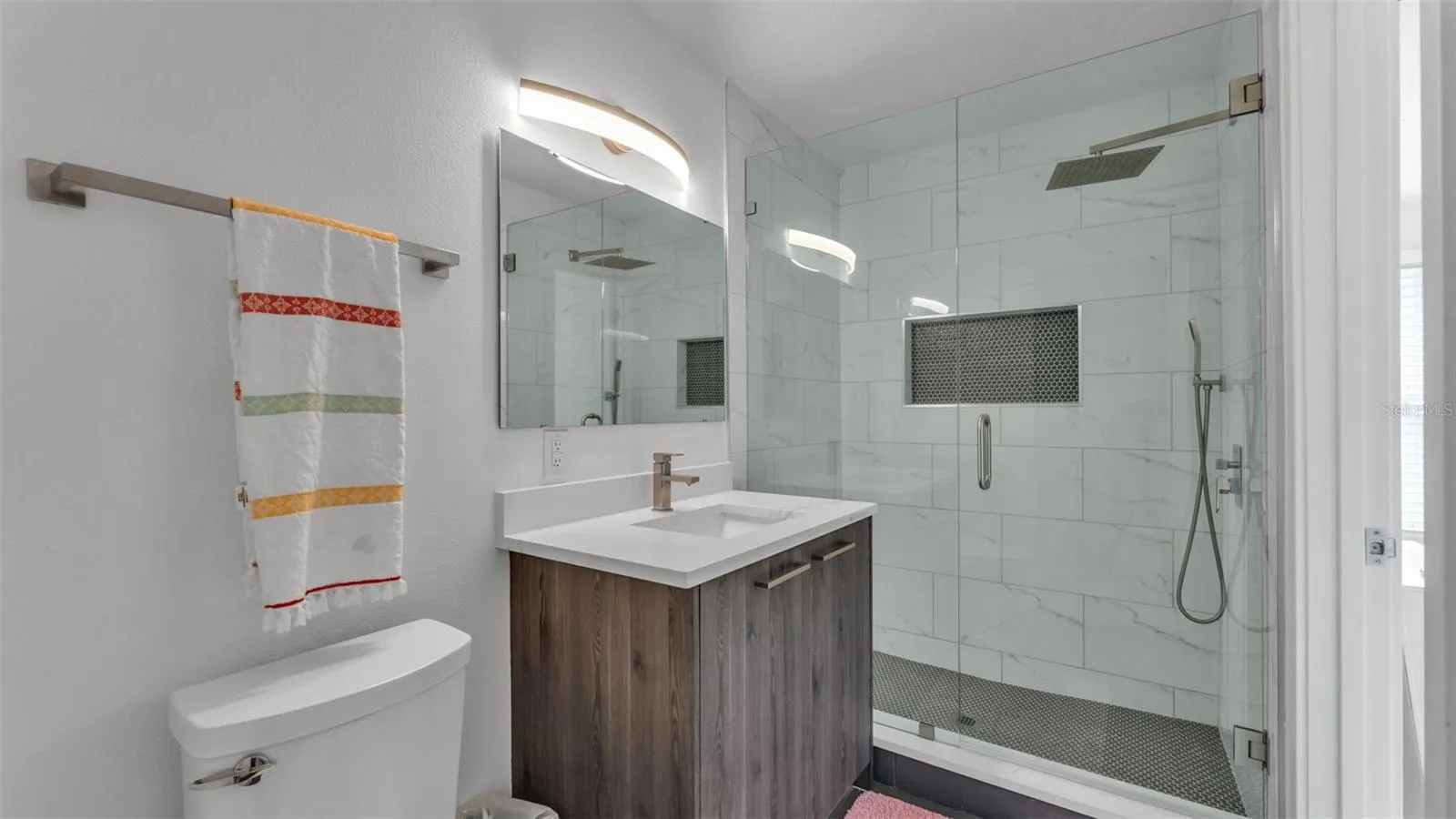 The primary suite, located on the first floor, offers a stunning walk-in closet and a spa-like bathroom with a freestanding soaking tub, double vanities, separate water closet, and an oversized double-head shower. Upstairs, you’ll find four additional bedrooms with a sleek glass panel railing system, a bonus storage room, and two beautifully renovated Jack & Jill bathrooms.\r\n