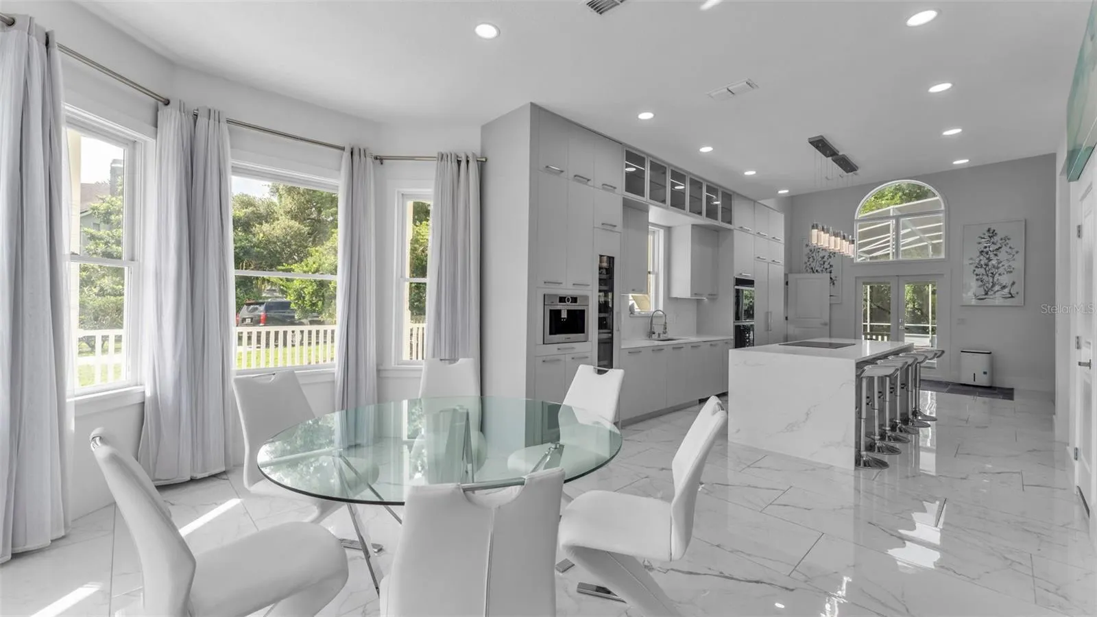 The gourmet kitchen is a showpiece with a waterfall island, drop-down range system, top-tier appliances, custom cabinetry, built-in double oven/microwave, wine cooler, and coffee station. A true chef’s delight, it’s designed for hosting family and friends with ease.\r\n