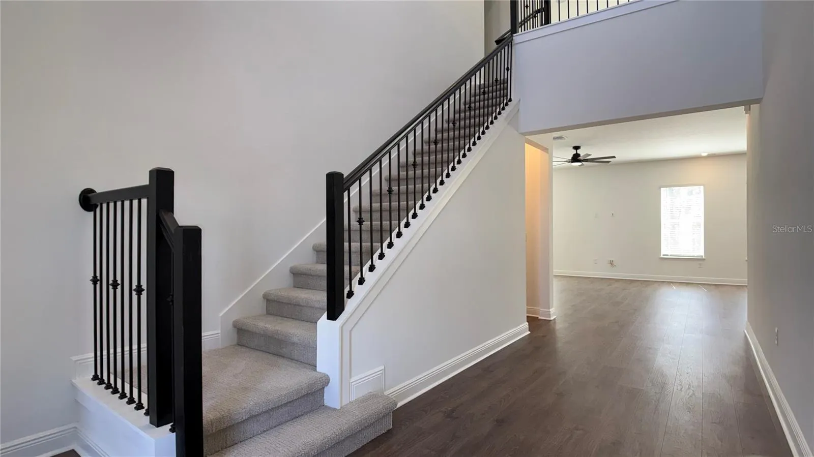 Other features include a striking metal-frame staircase, durable vinyl flooring on the first floor, plush carpet on the second, and a well-appointed laundry room with cabinets, a convenient sink, and washer and dryer. Smart home features include wired ceilings with built-in speakers for seamless entertainment.\r\n