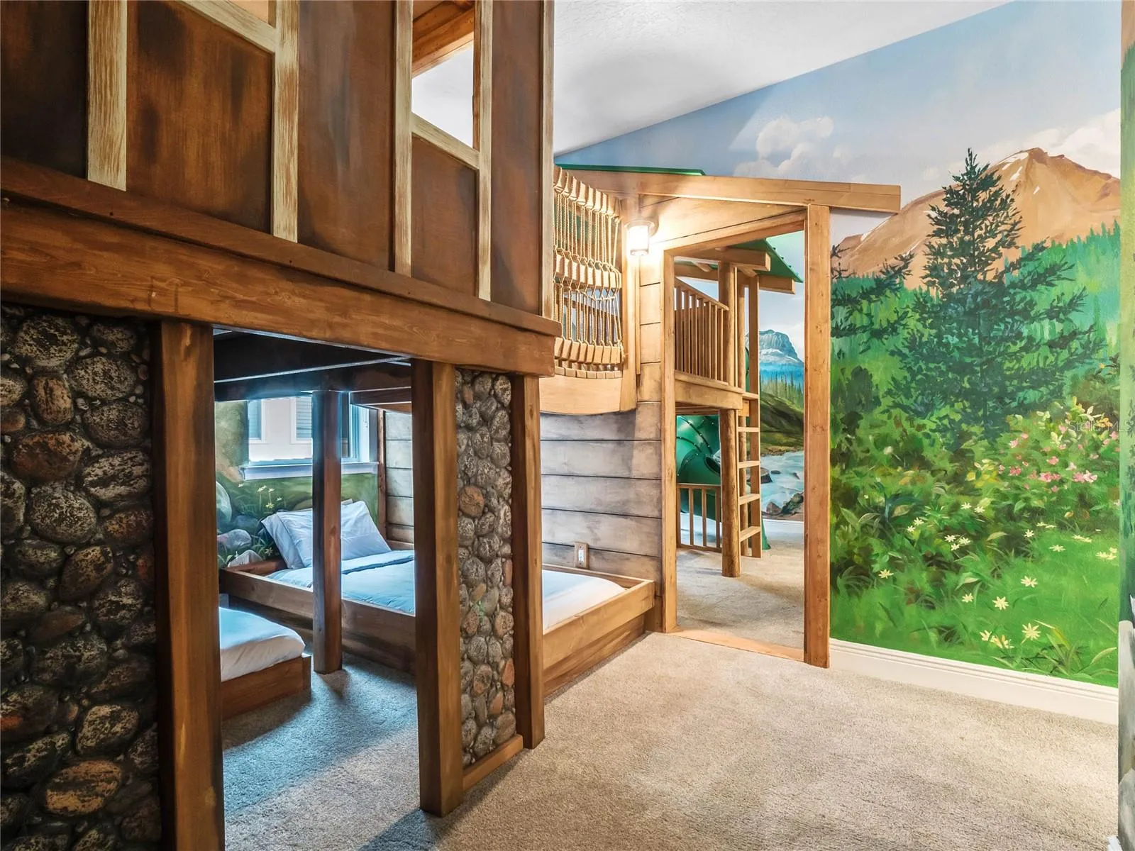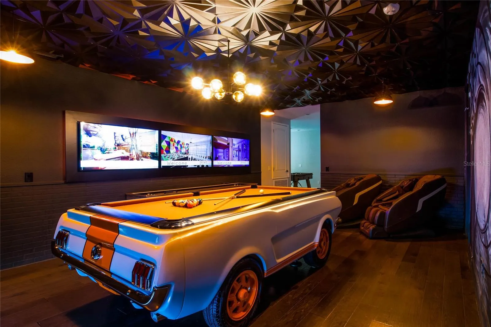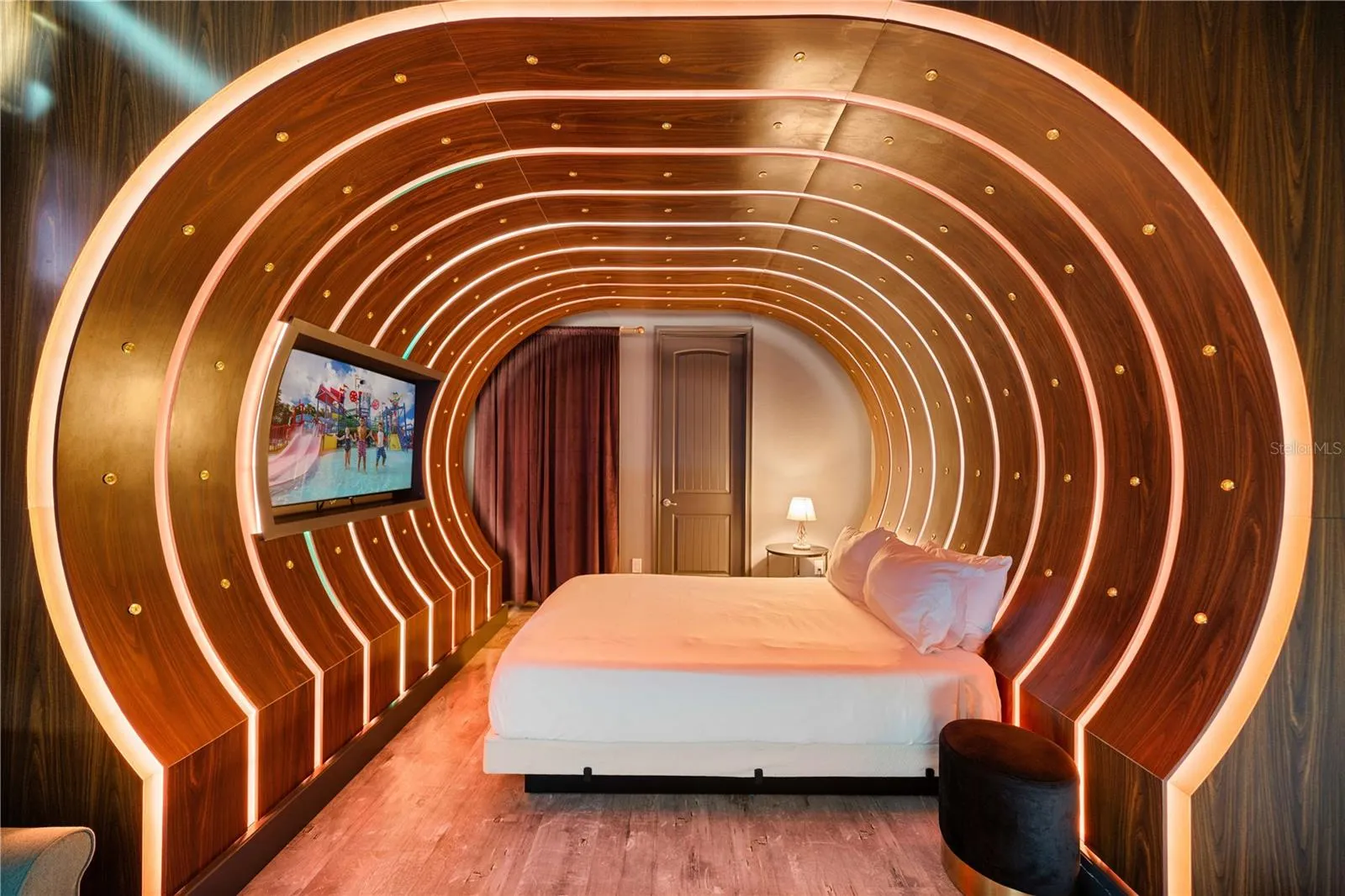 The magic truly unfolds upstairs where imagination takes center stage. Guests are wowed by a classic CARTOON THEMED THEATRE ROOM with tiered seating and CUSTOM MURALS, and a SECRET-AGENT inspired game lounge complete with a 1965 Ford Mustang pool table, dual massage chairs, and shuffleboard. Immersive themed bedrooms transform every stay into an adventure, from a GEM MINE TRAIN and JAMES BOND 007 suite to a DEEP-SPACE ESCAPE and a ONE-OF-A-KIND TREE LODGE with custom bunk beds, a suspension bridge, and a TUNNEL SLIDE that delights guest of all ages. A converted garage GAME ROOM on the main level adds even more entertainment with a custom basketball shooting game, ping pong, and arcades. Every inch of this professionally decorated, fully furnished property blends high-end finishes with unforgettable experiences, ensuring rave guest reviews and repeat bookings.\r\n