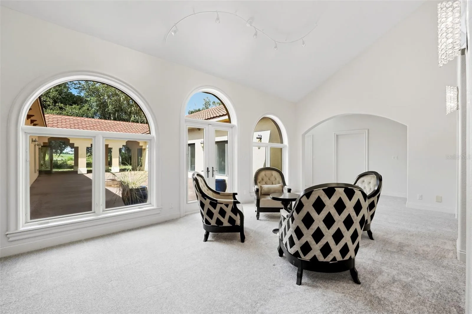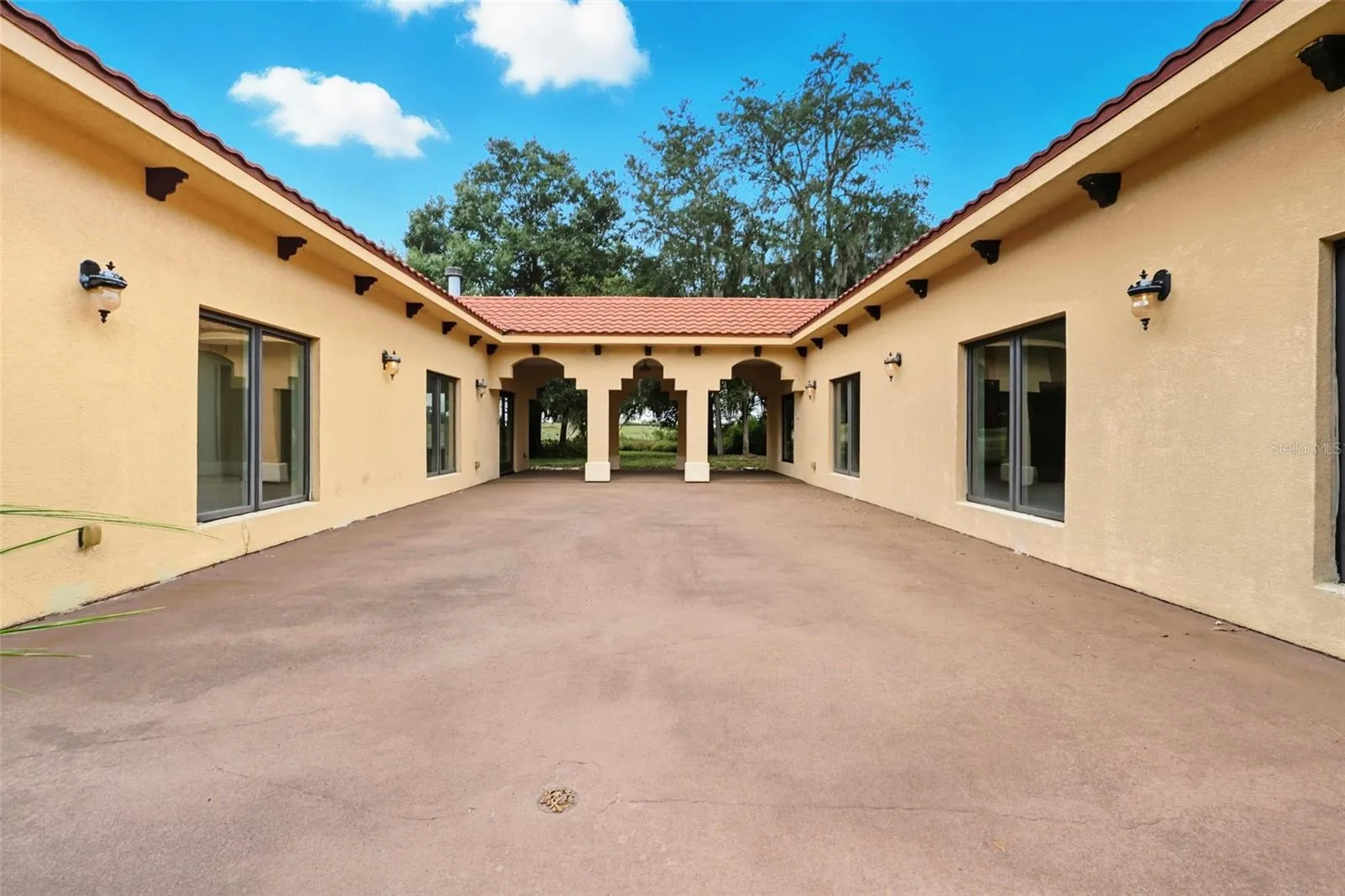 +"PublicRemarks": "Welcome to this one-of-a-kind GOLF FRONT equestrian estate home on 5 high and dry private acres. This mediterranean property features over 6,500 of living SQFT with 3 bedrooms, 3 full bathrooms, 2 half bathrooms, extensive natural light throughout, 2 fireplaces, 2 laundry areas, a theater ready room, ample entertaining space all thoughtfully positioned between a North and South wing. The primary suite is situated in the South wing and has its own private fireplace with extensive views of the 14th fairway of Champion’s Gate award winning National Golf Course, a massive walk-in closet and custom travertine fitted bathroom with jetted tub, separate shower and dual vanities. Extra rooms in the South wing include a massive laundry room/utility room, flex room off the kitchen (play room, office, storage) and a half bathroom. Additionally in the South wing is massive 14+ seat dining room and the top-of-the-line custom kitchen with all wood Bertch cabinets, extensive level 5 granite countertops, a Miele Dishwasher, a Fisher & Paykel 2 drawer dishwasher, GE Monogram under counter 2 drawer beverage refrigerator, Sub-Zero built-in refrigerator, double Miele ovens, a Miele warming drawer and a Miele 5 burner cooktop. The North wing features 3 bedrooms (or 2 bedrooms and an office), 2 bathrooms, 1 half bathroom, a theater ready room, a laundry closet, and two additional living rooms. The center of the home features a massive great room with cathedral ceilings, a double-sided fireplace and the grand entryway with a custom iron front door, travertine flooring and ample storage. The home is surrounded by over 2,700 SQFT of covered outdoor space and is centered on a large 1,100+ SQFT courtyard. Other features include 2 water heaters, double pane windows and doors, custom millwork around each window, solid core doors, rounded drywall edges, architectural niches, barrel tile-look metal roof, spray foam insulation, 2 a/c’s, a private well and all of this on a private 5 acre lot. Within minutes to Disney World, Seaworld, Universal, award winning shopping and restaurants and short access to multiple golf courses and the interstate. The property has the feeling of being rural and still within minutes of all that Central Florida has to offer. Don’t miss the immersive virtual tour!"