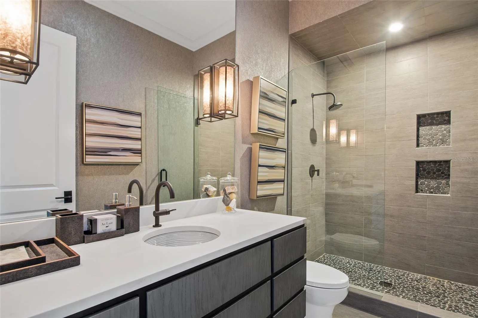 Upstairs, a private gym and three additional bedrooms, each with modern en-suite baths and floating vanities, provide comfort and style for family or guests. \r\n