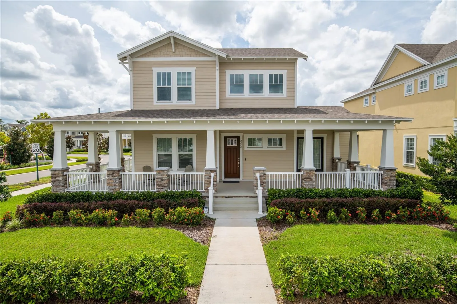 +"PublicRemarks": "Step inside this home from anywhere! To experience a fully immersive walk-through of this home click on the Video or Virtual Tour button on this page. Exquisite Luxury Residence in Celebration’s Coveted Island Village. Perfectly positioned on a premium corner lot, this meticulously maintained luxury residence embodies refined elegance and timeless design. Nestled within the highly sought-after community of Celebration, renowned for its picturesque tree-lined streets and vibrant, resort-style lifestyle, this home offers an exceptional blend of sophistication, comfort, and convenience. As you arrive, you’re greeted by a gracious wrap-around porch and inviting entryway — a true statement of Southern charm and architectural craftsmanship. Step inside to a grand foyer with soaring ceilings, abundant natural light, and a thoughtfully designed open layout that flows effortlessly from room to room. The wood-look tile floors laid in an elegant herringbone pattern set the stage for modern luxury and warmth throughout the first level. The living and dining areas seamlessly blend, creating an ideal space for intimate gatherings or elegant entertaining. The designer kitchen is a chef’s dream, boasting espresso 42” cabinetry, a dramatic waterfall island with bar seating, veined quartz countertops, stainless steel Whirlpool appliances, including a gas cooktop with range hood, custom tile backsplash, and a walk-in pantry for additional storage. The primary suite is a private sanctuary featuring a tray ceiling, spa-inspired ensuite bath with a long dual quartz vanity, frameless glass shower with floor-to-ceiling tile, and a generous walk-in closet. A versatile guest suite or home office is conveniently located on the main level, complemented by a luxurious full bath featuring a walk-in tile shower and quartz-topped vanity. Upstairs, a spacious loft provides endless possibilities — perfect for a media lounge, game room, or private retreat. You’ll find three additional bedrooms, two connected by a Jack and Jill bath with dual vanities and a designer-tiled tub-shower combination, and a fifth bedroom with a double-door closet and generous proportions. Step outside to your pavered lanai and partially fenced backyard, the perfect setting for alfresco dining, morning coffee, or relaxing under the Florida sun. Living in Island Village at Celebration offers a truly elevated lifestyle. Residents enjoy resort-style amenities, including a state-of-the-art clubhouse with a full fitness center, a spectacular resort pool, quaint cafés, boutique shops, fine dining, and miles of scenic walking and biking trails surrounded by pristine lakes and natural beauty. Top-rated schools lie within the community, and the iconic Downtown Celebration — with its charming restaurants and seasonal events — is just minutes away. This is more than a home — it’s a refined retreat designed for those who appreciate beauty, privacy, and an unparalleled standard of living in one of Central Florida’s most prestigious neighborhoods."