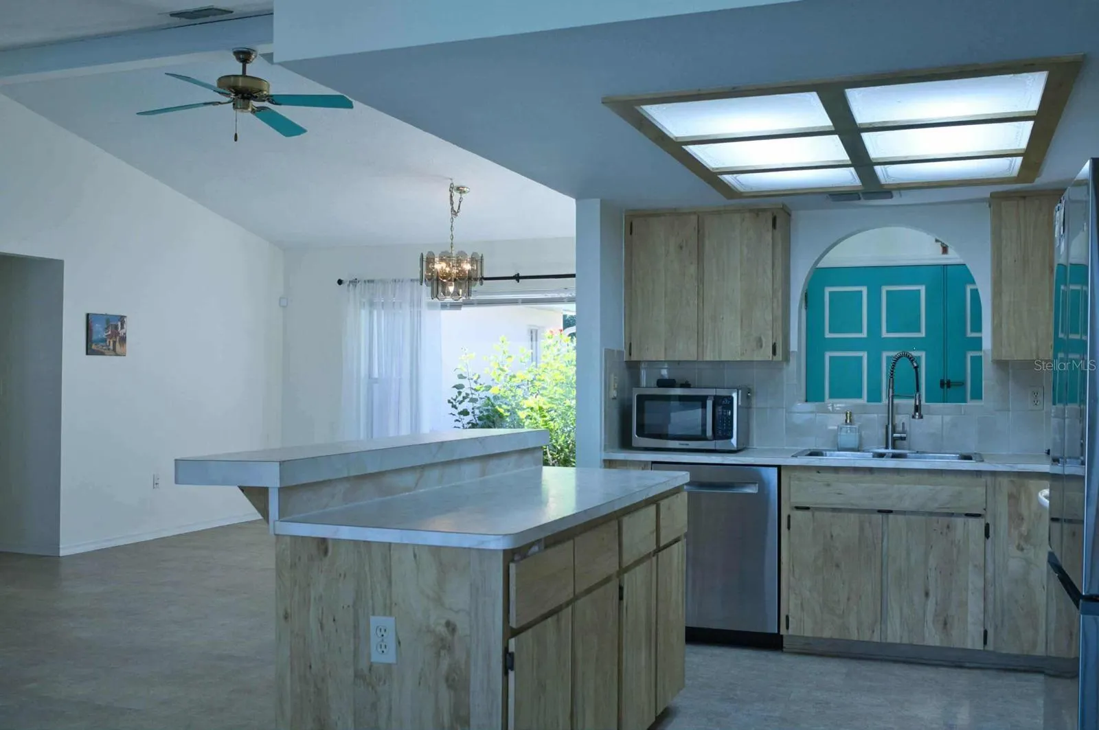Kitchen has large island , large living room with easy access to large patio and pool area. Family room with decorative fireplace. Second bedroom with walk in shower. Home office possibility. High speed internet wired. Alarm system with exterior cameras available to be connected. POOL SERVICE AND LAWN SERVICE INCLUDED.