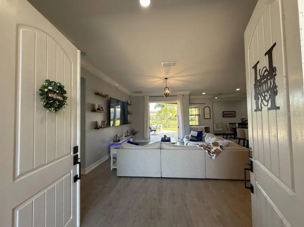 +"PublicRemarks": "This stunning single story 4 bedroom, 3 bathroom, 2531 sq Foot open Concept home is thoughtfully designed to enjoy the indoor/outdoor living spaces. Located on one of Orlando's Top Golf Courses with extensive amenities in the exclusive and secure gated community of Eagle Creek; this luxurious home is filled with peace of mind and is ready to welcome its new owner. Everything is new from appliances to paint. A warm; open concept space with double islands boasting white quartz counter tops, a farmhouse sink, blue cabinetry with plenty of storage for your entire crew and custom made floating shelves with under lighting on a marble back splash as the focal point. This kitchen is a dinner party host's dream or a mom's best friend. Security installed in both the front and back of the home. Lights replaced with LED's on both the interior and exterior. New smoke and carbon monoxide detectors. New hardware, door handles, light fixtures, induction cook top, smart appliances and thermostats, beach sand flooring, curtain rods, outlet cover, bidets, 86' flat screen TV, closet fixtures, painted mailbox, trimmed greenery, and so much more. Both inside and out no detail was left untouched. Including the 42' space between the islands- Kitchen is ada Compliant. Natural lighting in every room. 12 foot ceilings. Nature inspired earth tones. 3 car garage. 3 sets of French doors. 15 foot Waterfront Views. Gated backyard. Amenities that include: Golf, Pool, Tennis, Soccer, Basketball, Pickleball, Gym & More. Located in Medical City. With Top rated schools & colleges nearby. You're not just buying A home. You're buying A lifestyle. All you have TO DO IS turn the key & move IN!"