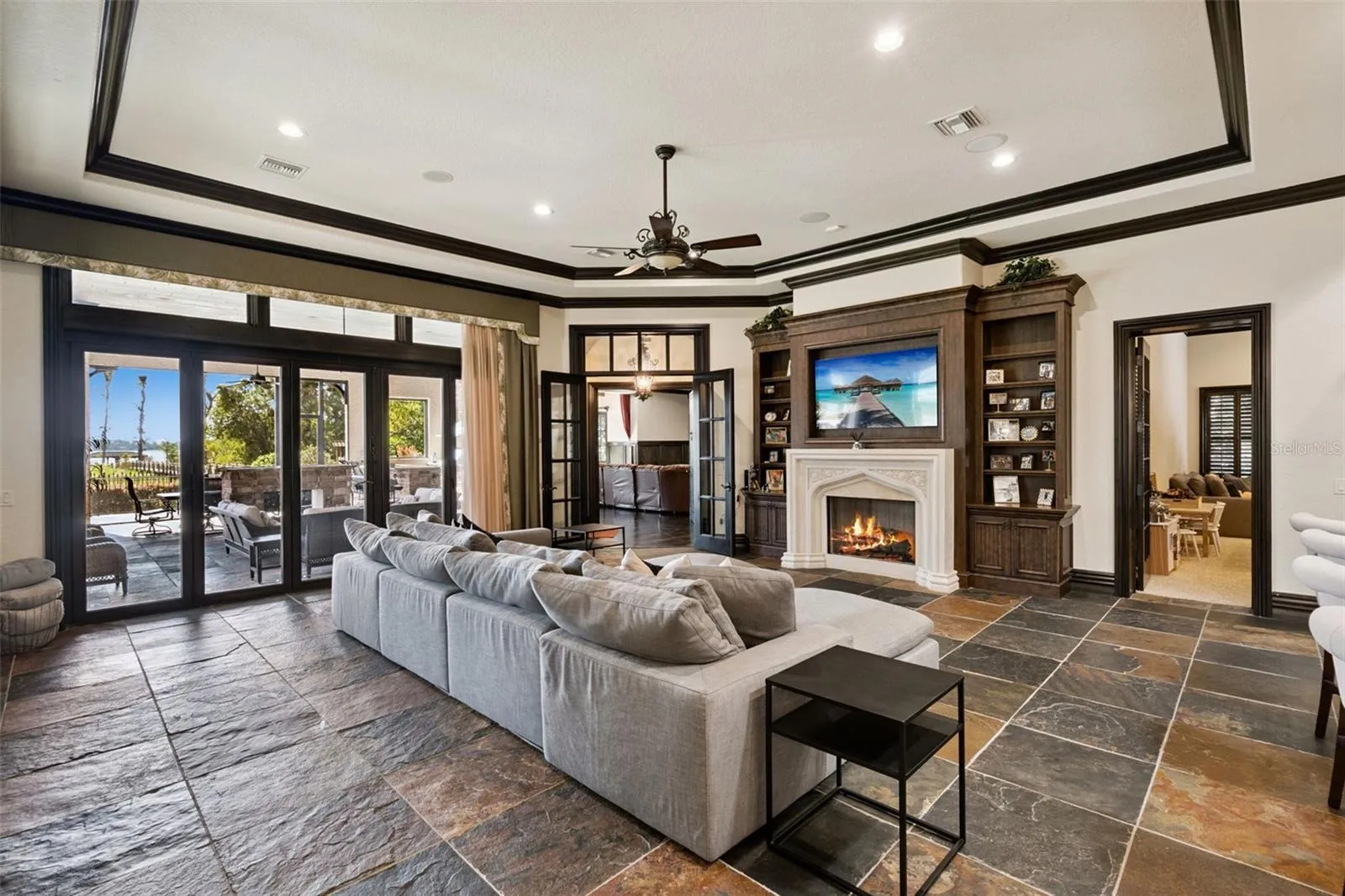 7 Bedrooms/8 Bathrooms and over 10,000 square feet with custom finishes including a chef's kitchen with butler pantry, home theatre, game room and professional bar. The formal dining room offers a custom designed wine cellar. The first floor owners retreat offers a private office, beverage station, screened lanai overlooking the pools and lake plus a spa bath and indoor and outdoor showers. Within the owners retreat is an upstairs owners lounge and screened balcony with panoramic view of the lake and nightly Disney Fireworks.\r\n