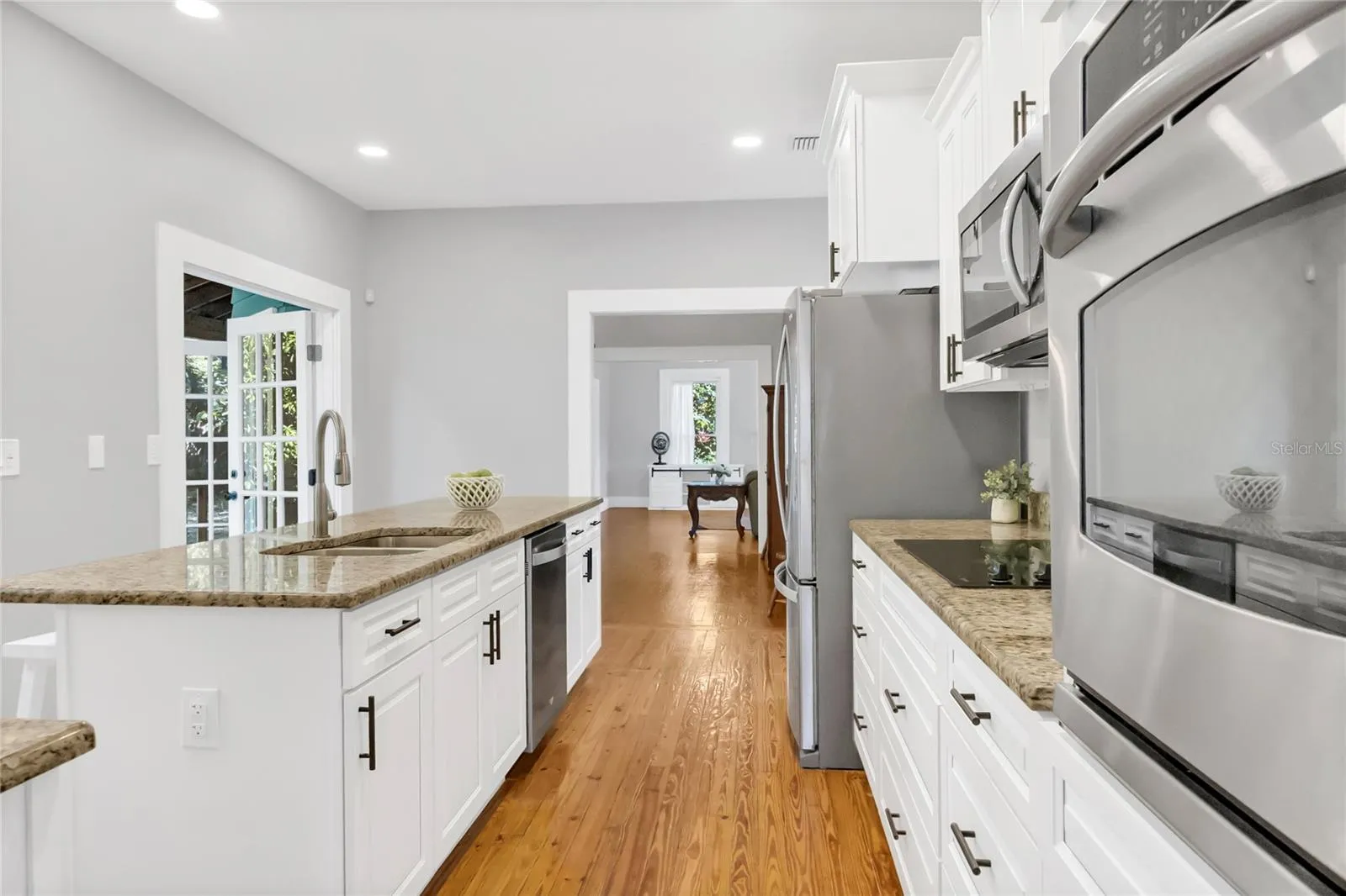 The island kitchen features granite countertops and generous workspace for cooking and entertaining. The first floor includes a full bedroom and bath, perfect for guests or a home office.\r\n