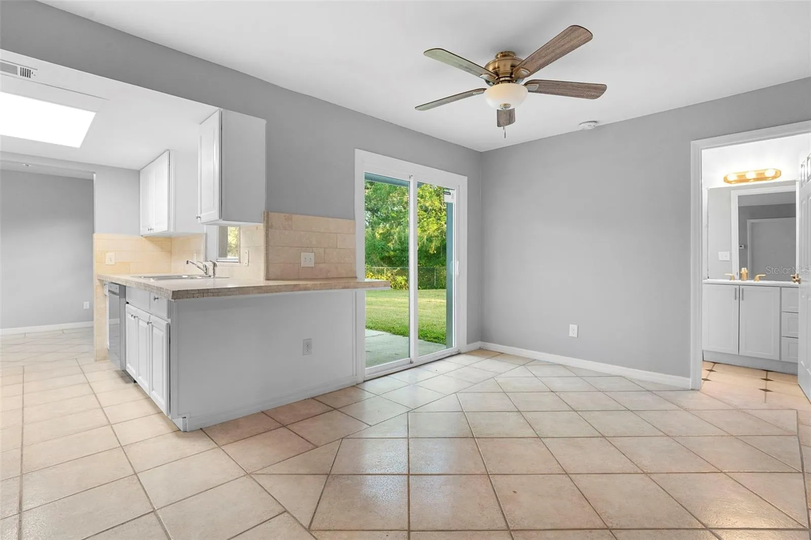 The kitchen features ample cabinetry, updated countertops, a tile backsplash, and sliding glass doors that lead to the covered patio and fenced backyard — perfect for relaxing or hosting gatherings. The primary suite provides privacy with an ensuite bath and generous closet space. Two additional bedrooms share a full bathroom, ideal for family or guests.\r\n
