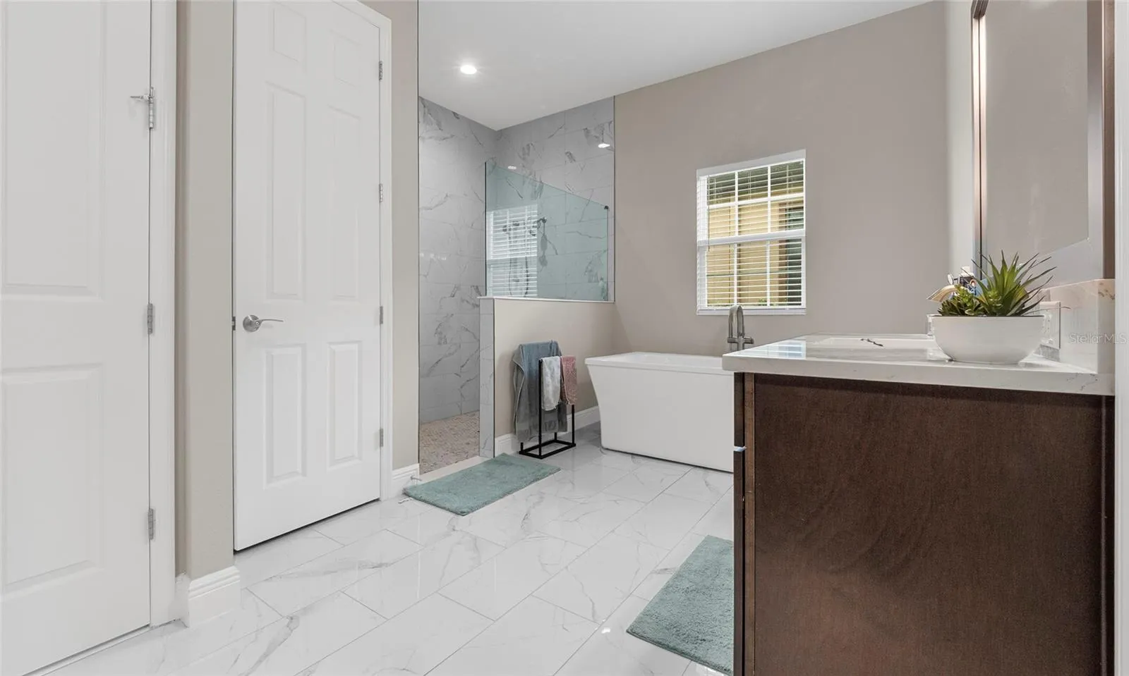 +"PublicRemarks": "Exquisite, nearly new home in the gated Sanctuary at John Moore prime Brandon location close to I-75. Quality Homes by WestBay features 5 bedrooms, 4 baths, office + bonus room, tile roof & luxury finishes throughout. Luxury vinyl plank and tile flows throughout the home. The gourmet kitchen boasts soft-close cabinetry, large island w/ seating + storage, 5-burner gas cooktop w/ hood, wall oven, microwave, and farm sink. Great room includes wood-beam accents leading to a covered peaceful outdoor lanai. Private owner’s suite offers coffered spa bath w/ freestanding tub, walk-in shower & dual vanities. 2 bedrooms share a bath off kitchen near great room for guest privacy. Bonus room & 5th bedroom located upstairs w/ full bath. Truly move-in ready luxury living!"