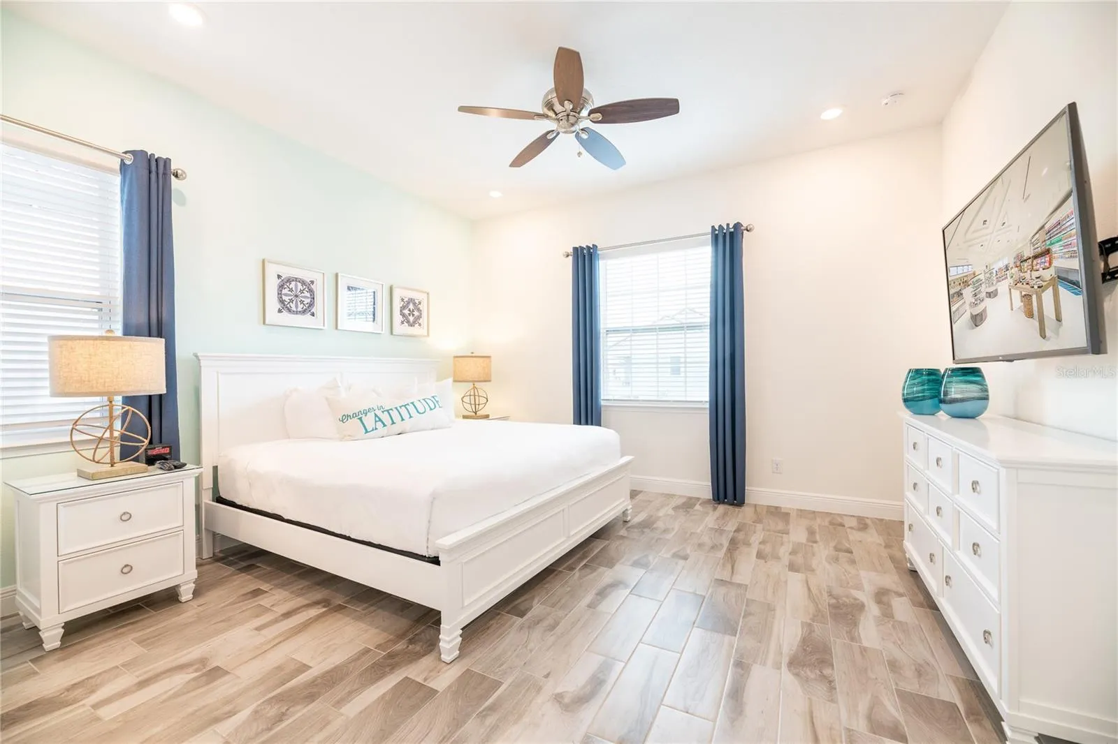 +"PublicRemarks": "Incredible 6 Bedroom WATER FRONT cottage with private pool and spa located in the heart of Margaritaville Resort just 5 minutes from Disney! This immaculately kept, highly sought after floorplan, sits on a large, premium lot with spectacular sunset views. This FULLY FURNISHED spacious open floorplan has sweeping views of the lagoon from every inch of the downstairs main living area, 6 large bedrooms, with master bedrooms both down and upstairs. This cottage comes fully equip with a double height entry way, high end wood look tile, quartz countertops, wooden stairs, oversized private owners closet, high ceilings, WiFi thermostat that can be controlled from anywhere via your smart phone, a bonus room upstairs with a pool table for endless family fun, a large second story balcony overlooking the lagoon, and so much more! The spacious, fenced, outdoor patio features a large private pool and spa, and ample eating and entertaining space. This property can be used as a full time residence, second home, or short term rental property. This resort style community features two large swimming pools, multiple restaurants and bars, fitness center, full service spa, lush and tranquil walking trails to all ends of the community, as well as a moments walk to all of the restaurants, bars, shops and entertainment that Sunset Walk has to offer! Low maintenance resort living includes fully maintained grounds, weekly pool maintenance, lawn care, and 24/7 roaming and manned gated security entrance."