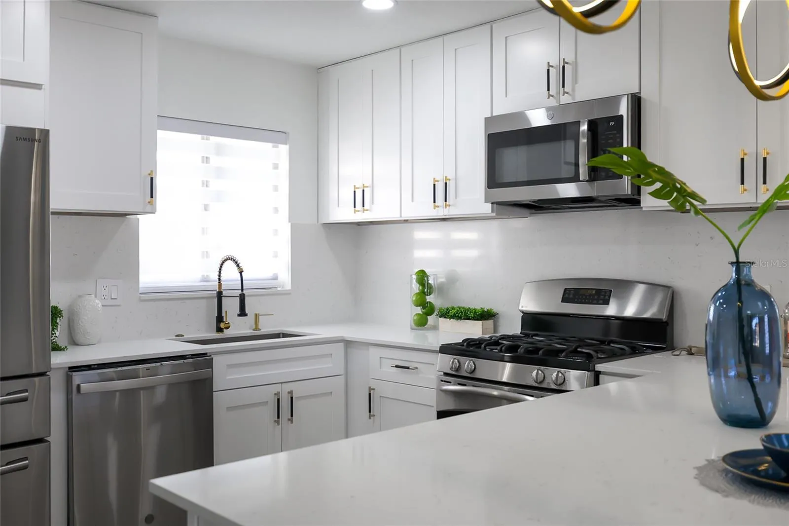 The all-new kitchen steals the show with quartz countertops, a gorgeous island, and brand-new cabinetry and finishes as well as stainless steel appliances including gas stove. Both bathrooms have been totally redesigned, giving the home a fresh, modern vibe from top to bottom.\r\n