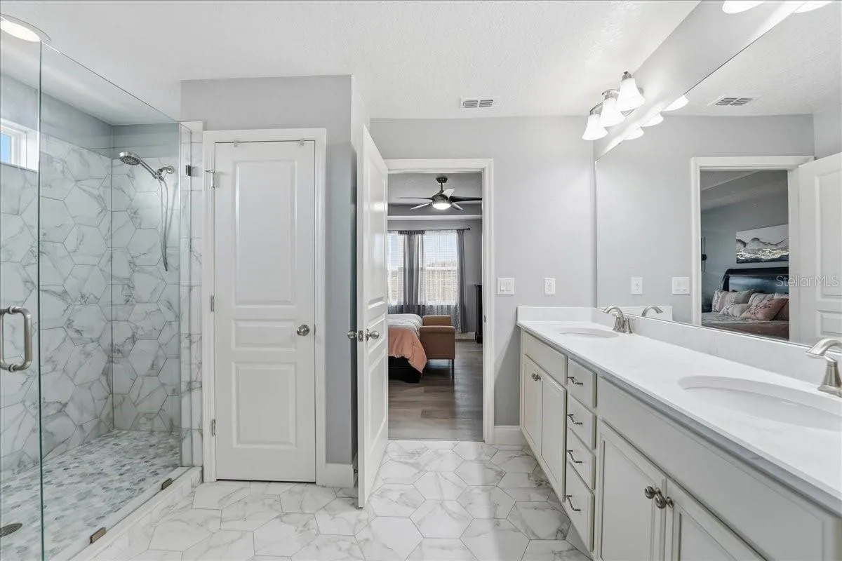 +"PublicRemarks": "Welcome to the highly coveted “Palermo” floorplan in Somerset Park — an official Lake Nona neighborhood — perfectly situated on one of the community’s larger corner lots. This impressive home offers an ideal blend of space, functionality, and luxury upgrades across nearly ¼ acre in a gated, smart-guard community with fiber-optic internet included. The standout feature of the Palermo is its split 3-car garage (2+1) and private downstairs in-law suite with its own entrance and full bathroom — perfect for multigenerational living, guests, or a home office with separation and privacy. Upstairs, you’ll find the second master suite, featuring dual walk-in closets, a beautifully remodeled hexagon-tile shower, and upgraded luxury vinyl plank flooring throughout. The dramatic two-story foyer and great room showcase a striking open staircase, leading to a spacious loft and two additional bedroom suites. The heart of the home is the gourmet kitchen, offering an oversized island, 42" cabinetry, walk-in pantry, and stainless steel appliances — perfect for entertaining or everyday living. Step outside to the extended, screened, and covered lanai, offering a massive outdoor living space that overlooks your fully fenced backyard with plenty of room to play, garden, or add future enhancements. Living in Somerset Park means access to resort-style amenities including a community pool and sand volleyball court, plus included internet and cable for everyday convenience. The location is unbeatable — near the Brightline station, Amazon distribution center, Orlando International Airport, and the new Lake Nona West shopping plaza with a highly anticipated Target, just minutes away. With every major upgrade already completed, this home is completely move-in ready. Don’t miss your opportunity to own the Palermo — on a premium corner lot — before it’s gone!"