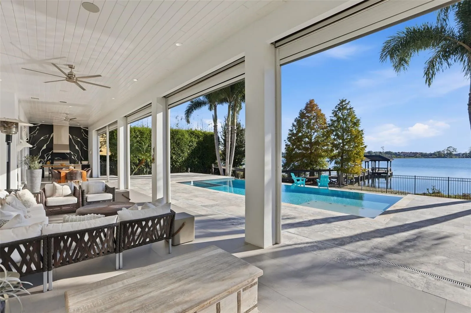 +"PublicRemarks": "Behind the gates of Keene's Pointe, on the pristine shores of Lake Burden, an extraordinary lakefront estate awaits where modern design, curated luxury, and a truly magical setting come together in perfect harmony! Vinci Drive is a custom-built, fully furnished, turnkey masterpiece offering over 6,000 square feet of refined living on a desirable 1.16 acre lakefront lot. From the moment you arrive, this home makes a statement – clean architectural lines, intentional design, and breathtaking water views that stretch across the lake and beyond. As evening falls, enjoy the rare luxury of nightly Disney fireworks, visible from your own backyard, adding an unforgettable backdrop to everyday living. Completely renovated with a modern edge, the heart of the home is the stunning 2023 kitchen and stonework remodel. Designed for both form and function, the chef’s kitchen features professional grade appliances, a temperature-controlled wine fridge, large walk-in pantry, custom countertops, and sleek cabinetry set against a fresh, contemporary color palette. This space flows effortlessly into the main living areas, creating an ideal environment for entertaining or relaxed lakefront living. The main level owner’s suite is a private retreat thoughtfully designed with a dramatic feature wall and fireplace, a custom walk-in closet, and a spa-inspired en-suite bath complete with a sauna. Each of the five bedrooms and seven bathrooms continues the theme of elevated comfort and style, offering space and privacy for family and guests alike. Designed for both entertainment and wellness, the home includes a private movie theater, home gym, and even a mini-golf addition – a rare and playful touch that enhances the lifestyle experience. Step outside to your personal outdoor oasis, where an infinity-edge pool appears to blend seamlessly into the lake, creating a serene yet striking setting for gatherings, quiet mornings, or sunset swims. With direct access to the Butler Chain of Lakes via a private dock, this lakefront location offers world-class boating, water sports, and endless recreation. Golf enthusiasts will appreciate this home’s proximity to the Jack Nicklaus Golden Bear Golf Club, while the location places you moments from fine dining, shopping, and the best of Windermere living – without sacrificing space, privacy or tranquility. Fully furnished and move-in ready, this modern lakefront estate is more than a home, it is a lifestyle defined by luxury, comfort, and unforgettable views. From sunrise over the water to fireworks lighting the night sky, Vinci Drive on Lake Burden offers a living experience few can rival. Call today to schedule your private tour and let us say WELCOME HOME!"