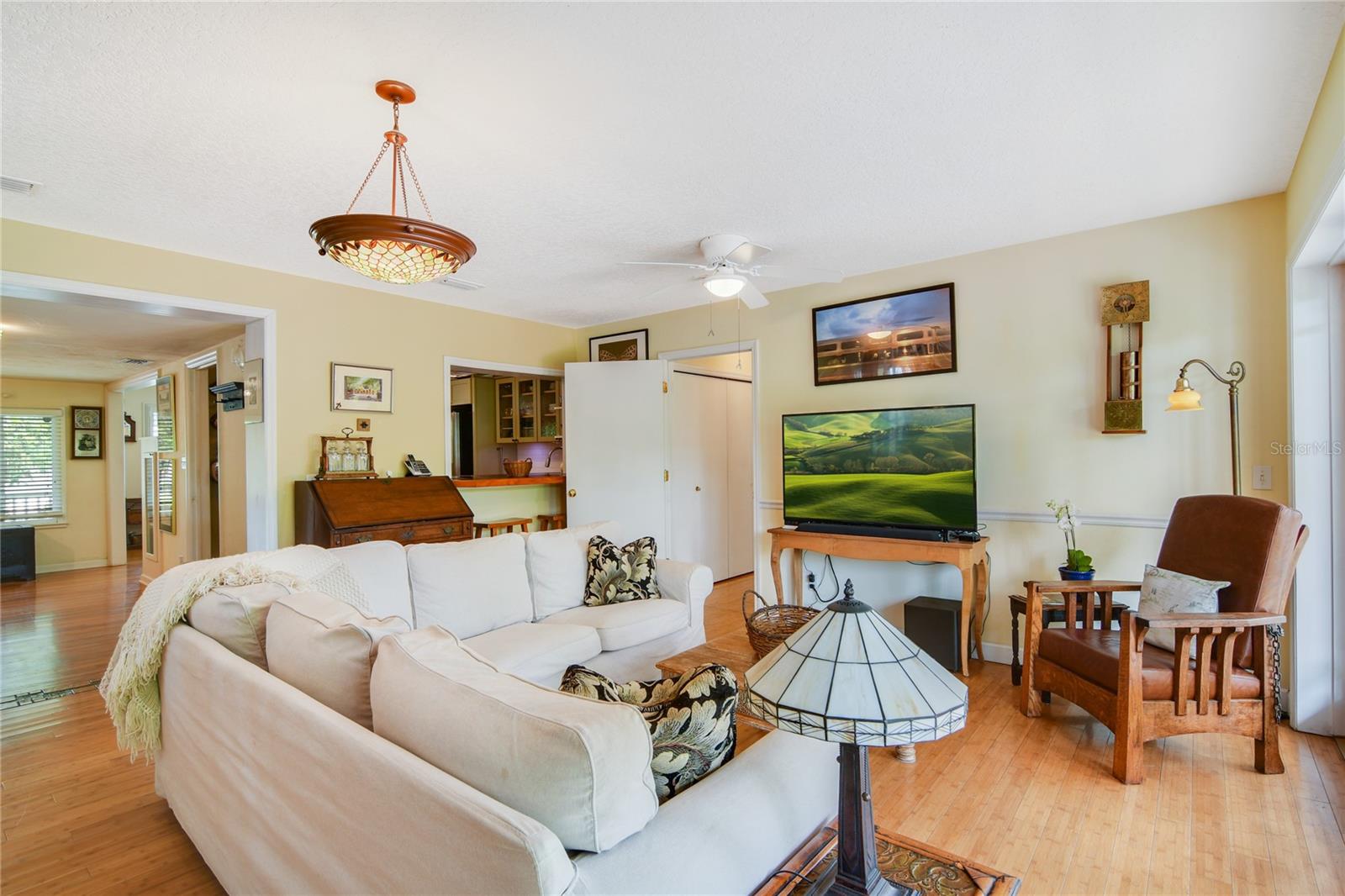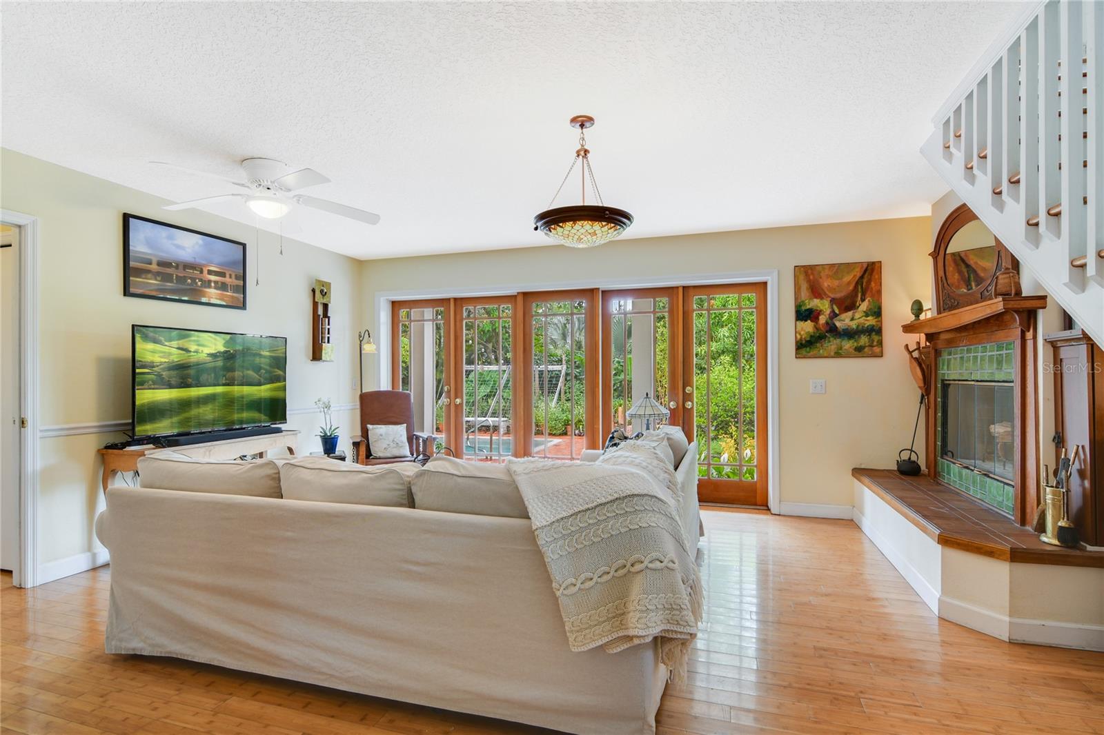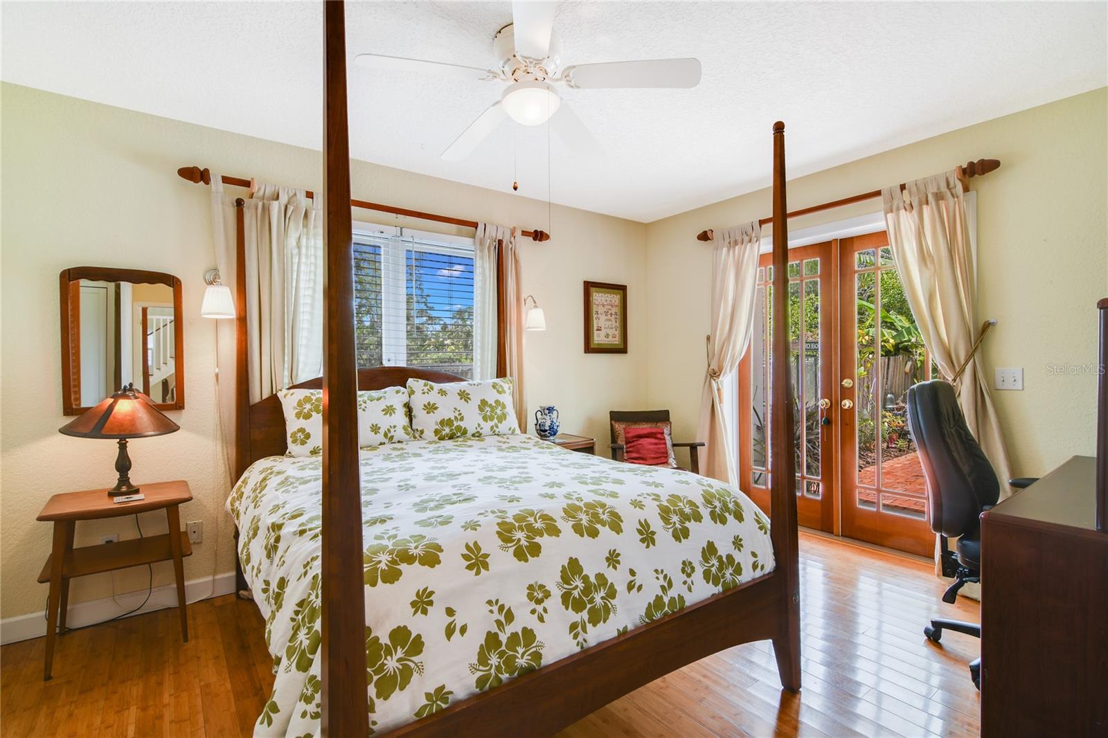 +"PublicRemarks": "Absolutely charming 4 bed/3 bath Craftsman-style bungalow with saltwater pool located in the heart of College Park, a dynamic neighborhood with great shopping, restaurants, and highly rated schools, just 5 minutes from Downtown Orlando. Flexible floor plan with both a first floor and upstairs main suite. Both suites offer the option of having an office/flex space or an additional private bedroom. Full kitchen remodel in 2011 includes solid oak butcher block countertops, custom KraftMaid cabinetry with soft close drawers and pantry. Organic landscaping, gardens and fruit trees provide extra backyard privacy. The attractive front features a new paver driveway and boasts four fruit-bearing citrus trees and a Dominican avocado tree. As you enter the home from the front porch you are greeted with original oak hardwood floors and loads of light from the generous windows in the dining room. Craftsman touches greet the eye throughout, such as a hand-tiled fireplace, floor to ceiling library shelving, giving a classic, traditional feel to this up-to-date home. A bespoke Craftsman display colonnade with oak-topped bar separates the dining room from the kitchen. To your right is a flex space with built-in bookshelves, great for a library or cozy living room. The open-view kitchen, designed by a professional food writer, features 2 flow-through bars – one off the dining area and the second one off the family room. The open family room features a wood burning fireplace with a custom Craftsman-style mantle with handmade tile, bamboo hardwood floors and a wall of French doors framing the verdant backyard and pool area. Off the family room is the main floor suite with an updated full bathroom with walk-in, wet-room shower, a laundry closet, built-in storage and French doors leading to the back yard. The other two ground floor bedrooms and the 2nd full bathroom are towards the front of the home. The 2nd floor addition was done in 2006 and was designed specifically to maintain the home’s charm. The hardwood stairs lead up to the second Main Suite which includes a sun-drenched flex space that can be used for a home office, fitness area or media area. Bamboo hardwood floors, custom built in cabinetry and French doors leading to a second story balcony are just a few of the details. Down the gallery style hallway lies the generous bathroom, with a large walk-in shower, repurposed vanity and a bidet. Next is the main bedroom oasis in the trees, with custom built- ins and four closets. The backyard is a gardener’s dream, which can be explored via vintage brick pathways. The salt system pool with vintage brick surround was built in 2016 and completes this backyard oasis. The 2 Carrier AC units were installed in 2020 and come with a transferable 5-year warranty. Hot water heater 2021 and range and dishwasher are less than 3 years old. Fireplace installed in 2002 and the chimney swept every 2 years. Extra insulation between the first and second floors as well as in the attic and west facing wall for low cooling and heating bills. The 4-zone automatic irrigation system, which waters the lawns, trees, and raised vegetable beds, is fed from a well to reduce water usage costs. Electric and plumbing were replaced during both the 2002 downstairs addition and the 2011 kitchen remodel."
