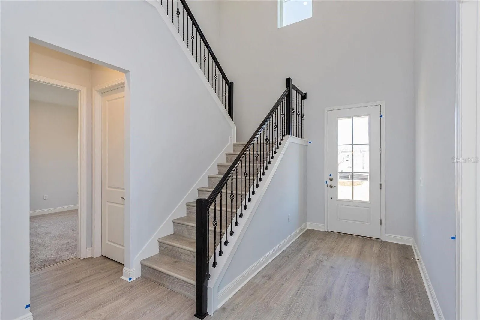 This stunning single-family home has plenty of space and many upgrades including a gourmet kitchen, stainless steel appliances, 42” cabinets, quartz countertops, an over-sized kitchen island, laminate floors throughout common areas, 2 story foyer ceiling upon entry of the home, 10’ ceilings on the first floor, and 8’ doors. Primary and bedroom 2 are on the first floor.\r\n